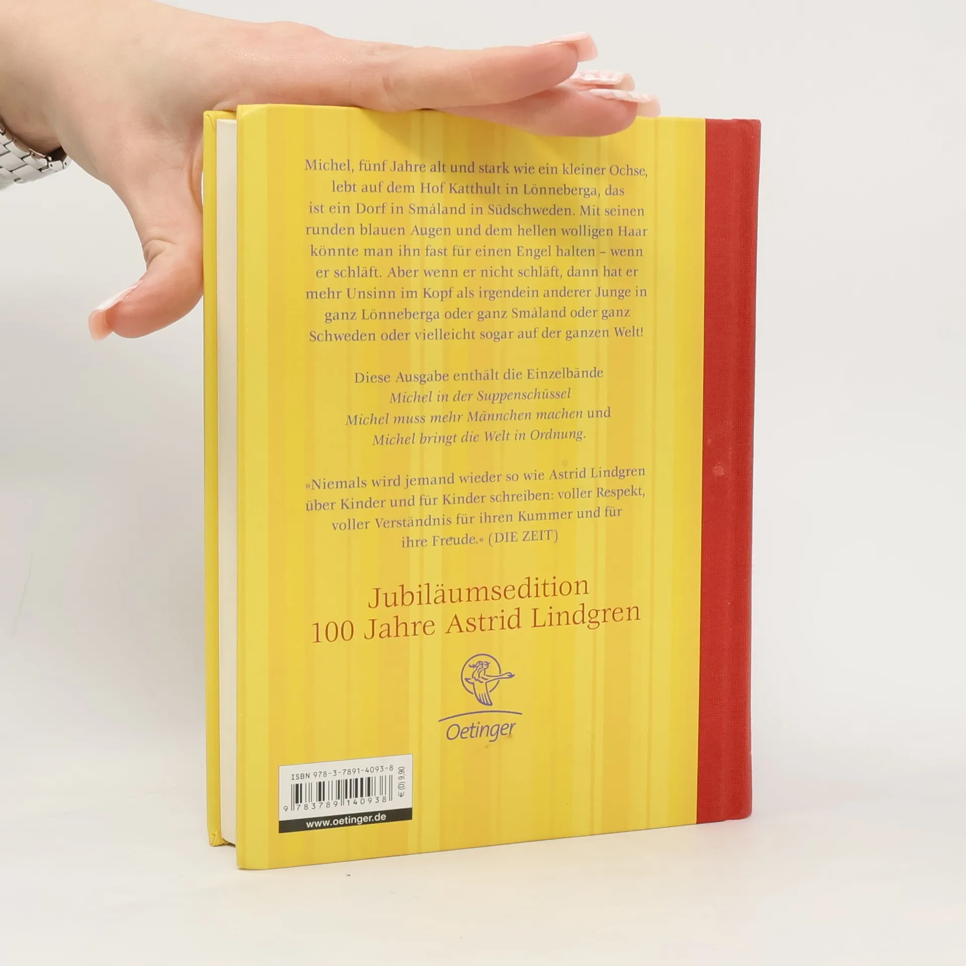Michel, fünf Jahre alt und stark wie ein kleiner Ochse, lebt auf dem Hof Katthult in Lönneberga, das ist ein Dorf in Småland in Südschweden. Mit seinen runden blauen Augen und dem hellen wolligen Haar könnte man ihn fast für einen Engel halten, wenn er schläft. Aber wenn er nicht schläft, dann hat er mehr Unsinn im Kopf als irgendein anderer Junge in ganz Lönneberga oder ganz Småland oder ganz Schweden oder vielleicht sogar auf der ganzen Welt!