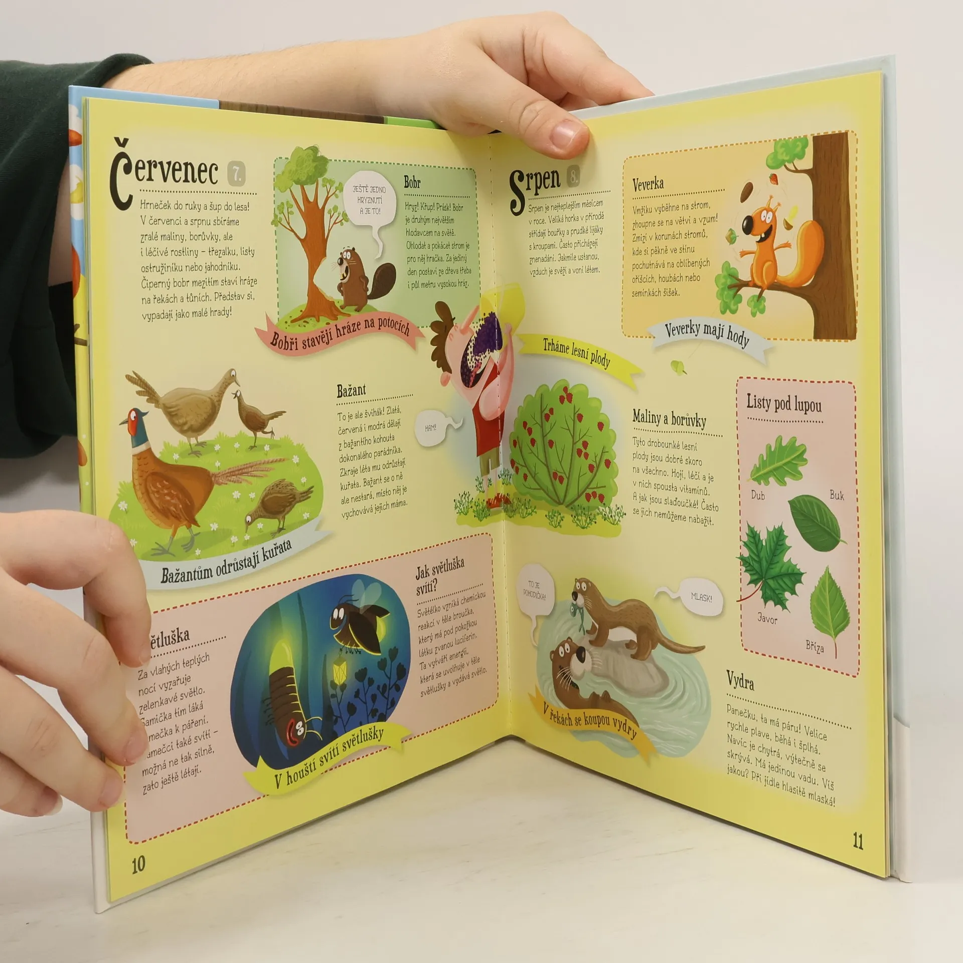 Bum! Bác! Ze stromů padají žaludy. Nebo že by to byly šišky? No jasně! Shodila je veverka, skočila ze stromu na strom a schovala se ve větvích. Uličnice! Zajdi se podívat za roztomilou akrobatkou i za jejími kamarády do lesa! Otevři knihu a zjisti, kdy co roste, jak se chovají zvířata, kdo je jedním z nejtajemnějších obyvatel lesů a skal, co dělá kuna po setmění nebo proč hadi vyplazují jazyk. Naučíš se rozlišovat zvířecí stopy a vyrobíš si svůj první herbář. Tak vzhůru do lesa za dobrodružstvím!