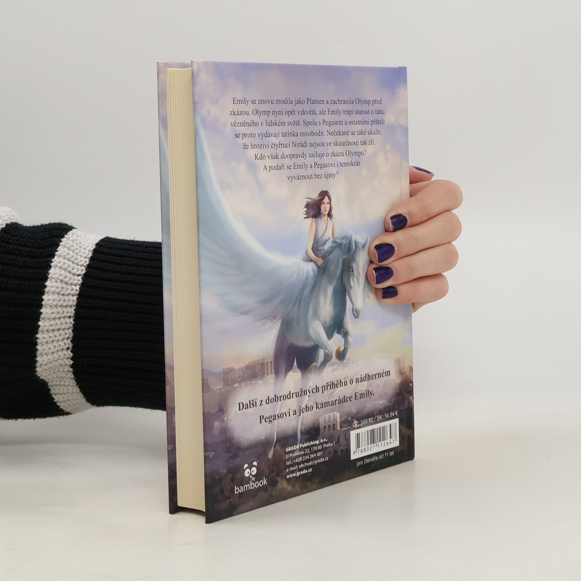 Další z dobrodružných příběhů o nádherném Pegasovi a jeho kamarádce Emily. Emily se znovu zrodila jako Plamen a zachránila Olymp před zkázou. Olymp nyní znovu vzkvétá, ale Emily trápí starost o tátu, vězněného v lidském světě. Spolu s Pegasem a ostatními přáteli se proto vydávají tatínka osvobodit. Nečekaně se také ukáže, že hroziví čtyřrucí Nirádi nejsou ve skutečnosti tak zlí. Kdo však doopravdy usiluje o zkázu Olympu? A podaří se Emily a Pegasovi i tentokrát vyváznout bez újmy?