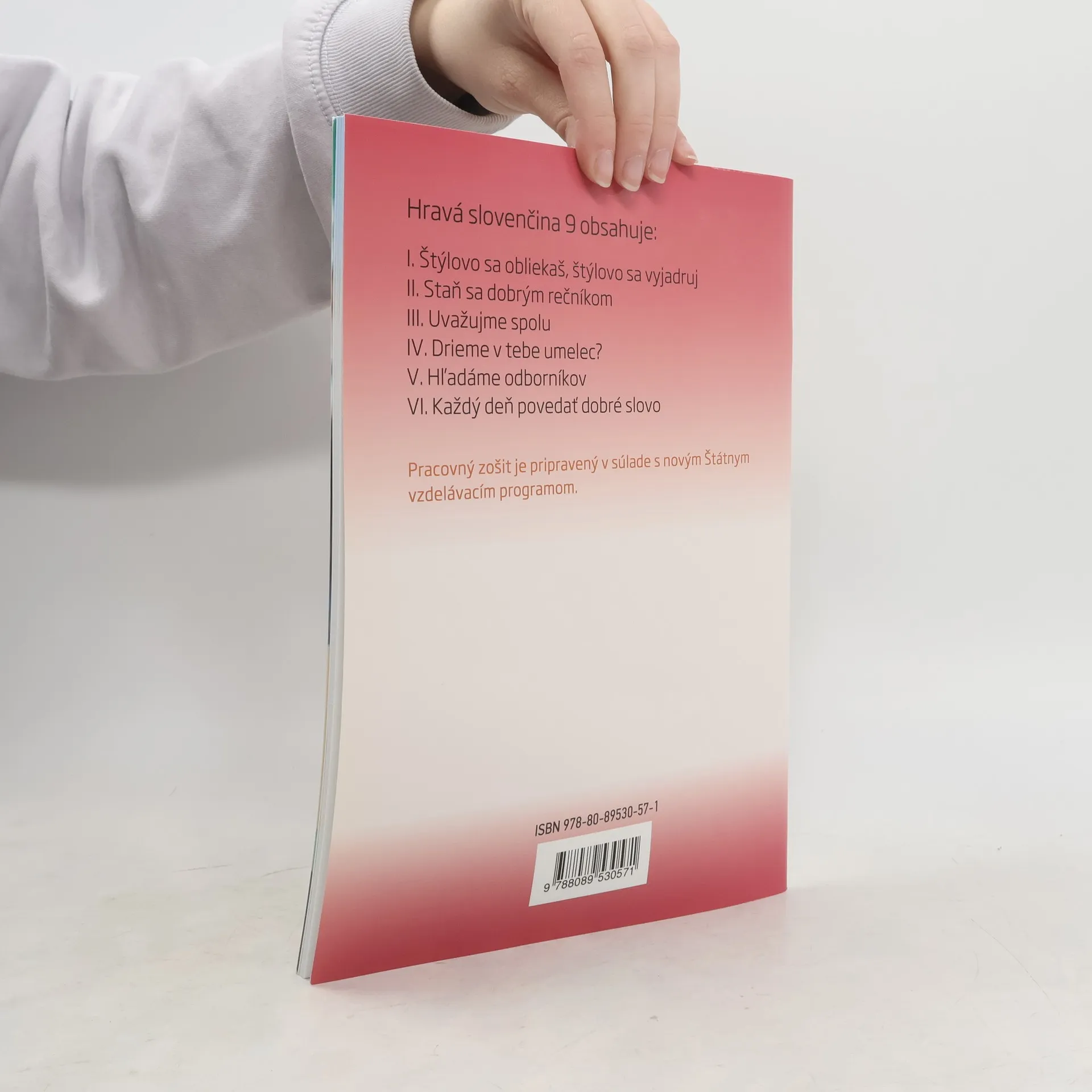 Pracovný zošit Hravá slovenčina 9 obsahuje zaujímavé a originálne cvičenia, pomocou ktorých si žiaci osvoja základné gramatické kategórie a pravidlá slovenského pravopisu. Zahŕňa tiež úlohy venované slohovému výcviku, ktoré podporujú rozvíjanie vyjadrovacích schopností a zručností žiaka. Dôležitou súčasťou pracovného zošita sú cvičenia zamerané na čítanie s porozumením a rozvoj slovnej zásoby. Pracovný zošit poskytuje primeraný priestor na opakovanie učiva v rámci každého tematického celku a na konci prináša súhrnný prehľad učiva z celého ročníka.