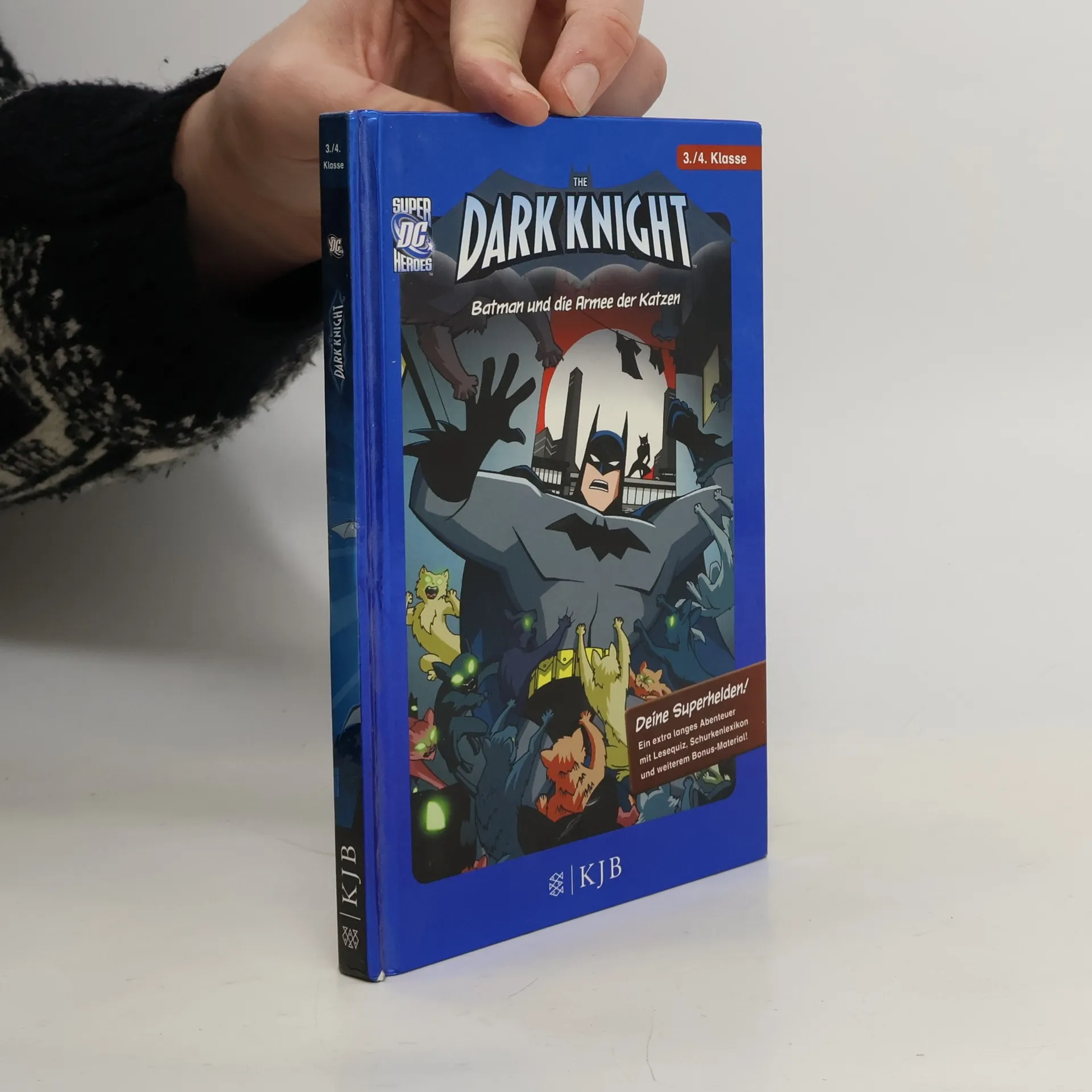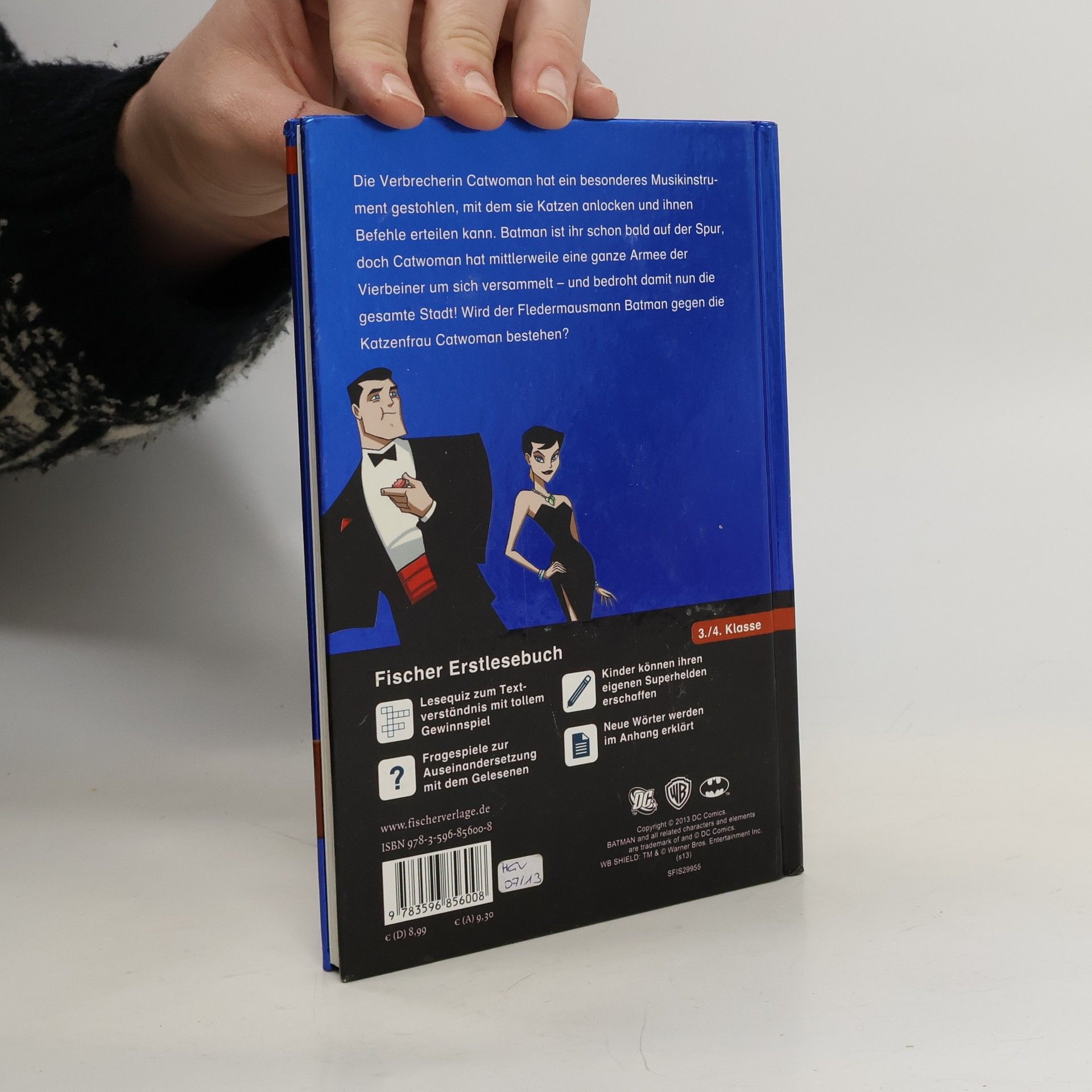 In diesem Erstlesebuch für fortgeschrittene Leser in der 3./4. Klasse steckt alles, was besonders Jungs sich wünschen: coole Helden, fiese Schurken, atemberaubende Spannung und jede Menge Action. Mit zahlreichen farbigen Illustrationen, spannendem Leserätsel und Extra-Seiten zum Mitmachen. So macht Lesen Spaß! Die Verbrecherin Catwoman hat ein besonderes Musikinstrument gestohlen, mit dem sie Katzen anlocken und ihnen Befehle erteilen kann. Batman ist ihr schon bald auf der Spur, doch Catwoman hat mittlerweile eine ganze Armee der Vierbeiner um sich versammelt – und bedroht damit nun die ganze Stadt! Wird der Fledermausmann Batman gegen die Katzenfrau Catwoman bestehen?