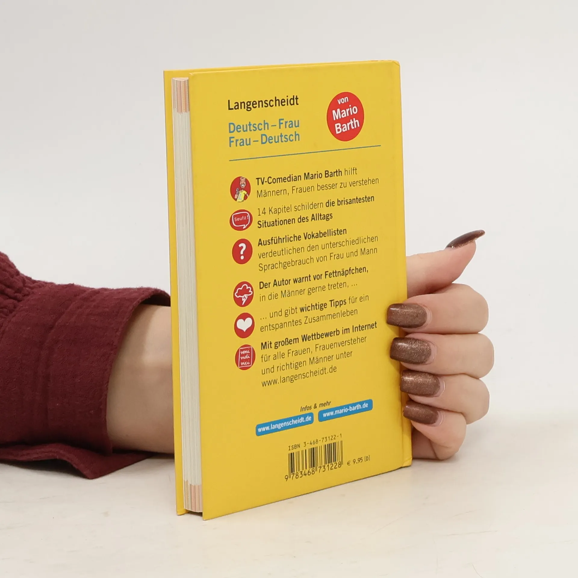 Schnelle Hilfe für den ratlosen Mann Frauen sprechen einfach eine andere Sprache als Männer. TV-Comedian Mario Barth leistet Verständigungshilfe und führt in 14 Kapiteln in die vertrackten Geheimnisse weiblichen Sprachgebrauchs ein.