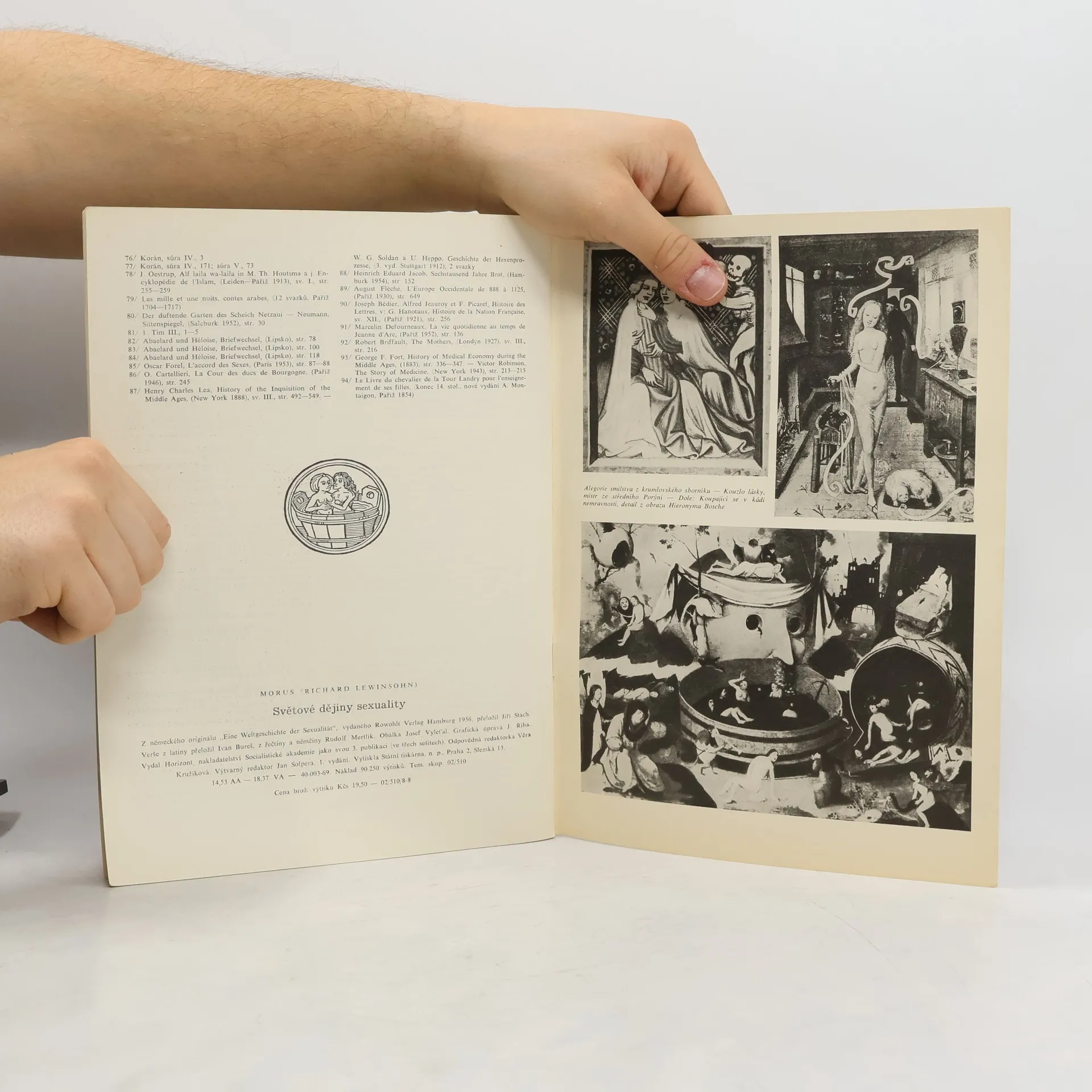 V dějinách jsme četli a slyšeli o ledačem, ale velmi málo o tom, jak soukromý sexuální život vedoucích lidí i celých národů utvářel dějiny. A přece je to faktor nadmíru důležitý, i když pro něj nemáme takové podklady jako pro různé jiné, o nichž nebylo tak choulostivé mluvit a zvláště psát v určité době a určitém prostředí. Je tedy těžší proniknout do poznání tohoto pozadí života, a pochopit je vyžaduje zvláštní nadání a znalosti. V tom je nutno obdivovat autora knihy, která se v trojsešitovém vydání dostává do rukou českému čtenáři. Na prvý ráz je zřejmé, že autor má nejen široké vzdělání a veliké znalosti medicínské, ale že je seznámen i s posledními poznatky o podstatě sexuální funkce u člověka a jejím ovládání. Je doktorem medicíny a státních věd, studoval sociální hygienu a národní hospodářství a hlavně zná svět a jeho dějiny. Dovede nejsložitější věci podat velmi živě, názorně a decentně; upoutá svým líčením, vzbudí zájem a uspokojí náročného čtenáře. Ale kdo očekává hlavně příjemné vzrušení z pikantních historek, bude asi poněkud zklamán a dočte knihu s jiným naladěním, nežli očekával.