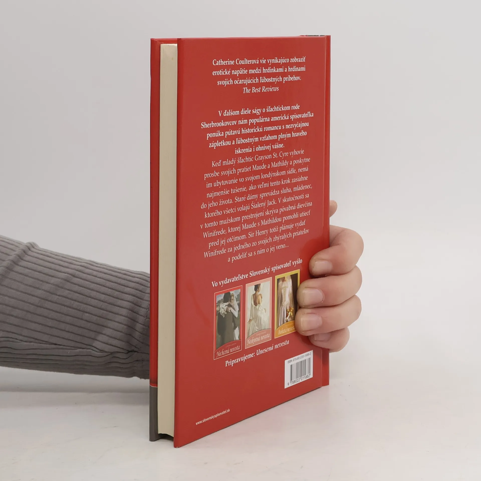 V ďalšom diele ságy o šľachtickom rode Sherbrookovcov nám populárna americká spisovateľka ponúka pútavú historickú romancu s nezvyčajnou zápletkou a ľúbostným vzťahom plným hravého iskrenia i ohnivej vášne. Keď mladý šľachtic Grayson St. Cyre vyhovie prosbe svojich pratiet Maude a Mathildy a poskytne im ubytovanie vo svojom londýnskom sídle, nemá najmenšie tušenie, ako veľmi tento krok zasiahne do jeho života. Staré dámy sprevádza sluha, mládenec, ktorého všetci volajú Šialený Jack. V skutočnosti sa v tomto mužskom prestrojení skrýva pôvabná dievčina Winifrede, ktorej Maud s Mathildou pomohli utiecť pred jej otčimom. Sir Henry totiž plánuje vydať Winifrede za jedného zo svojich zhýralých priateľov a podeliť sa s ním o jej veno...