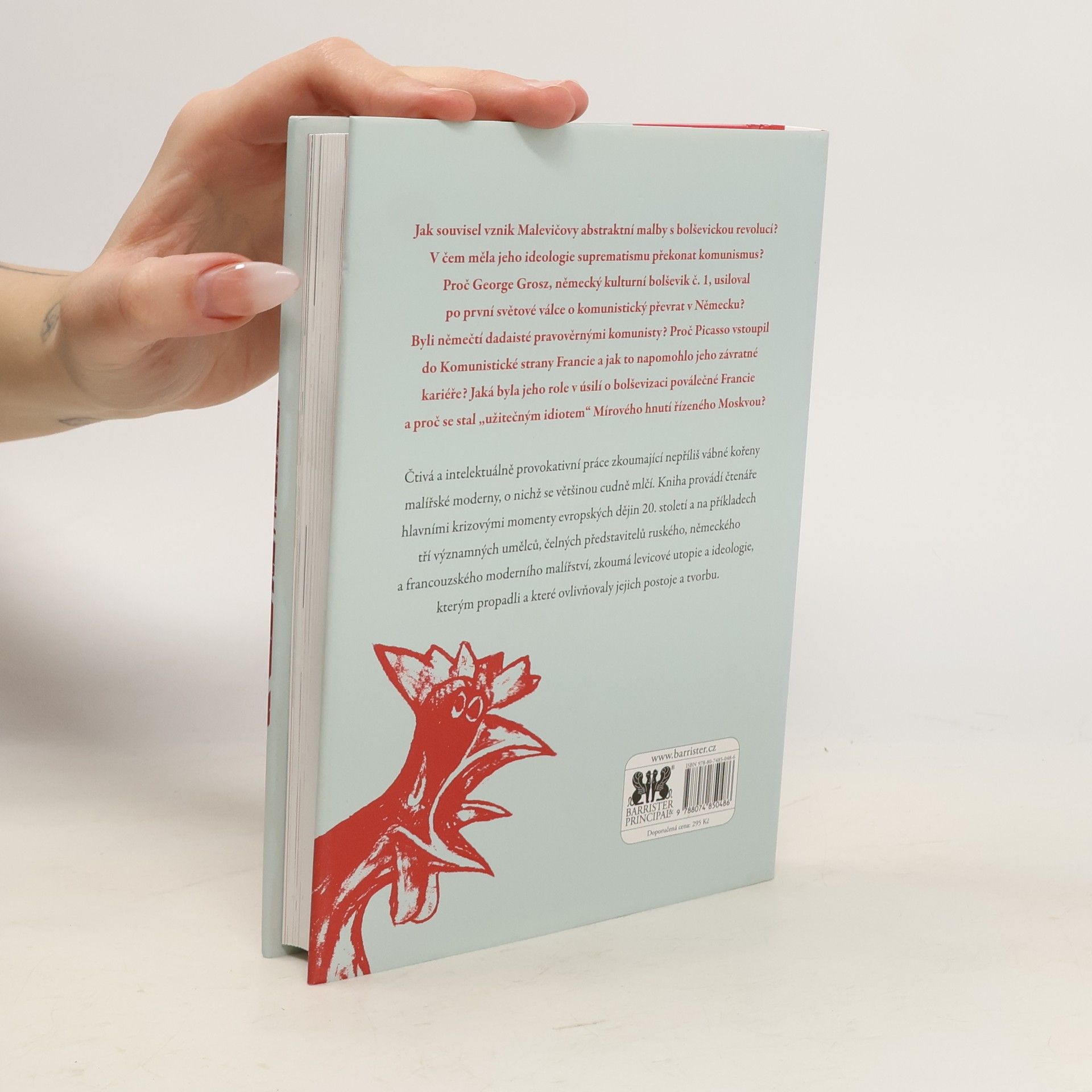 Jak souvisel vznik Malevičovy abstraktní malby s bolševickou revolucí? V čem měla jeho ideologie suprematismu překonat komunismus? Proč George Grosz, německý kulturní bolševik č. 1, usiloval po první světové válce o komunistický převrat v Německu? Byli němečtí dadaisté pravověrnými komunisty? Proč Picasso vstoupil do Komunistické strany Francie a jak to napomohlo jeho závratné kariéře? Jaká byla jeho role v úsilí o bolševizaci poválečné Francie a proč se stal „užitečným idiotem“ Mírového hnutí řízeného Moskvou? Čtivá a intelektuálně provokativní práce zkoumající nepříliš vábné kořeny malířské moderny, o nichž se většinou cudně mlčí. Kniha provádí čtenáře hlavními krizovými momenty evropských dějin 20. století a na příkladech tří významných umělců, čelných představitelů ruského, německého a francouzského moderního malířství, zkoumá levicové utopie a ideologie, kterým propadli a které ovlivňovaly jejich postoje a tvorbu.