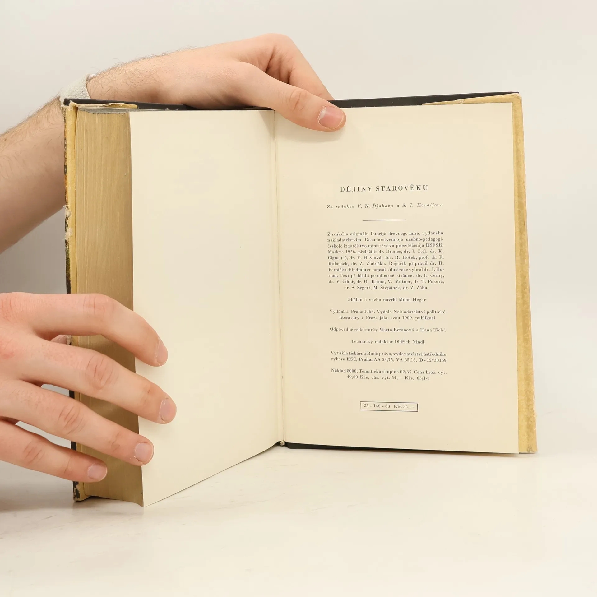 Učební text dějepisu pro 6. postupný ročník všeobecně vzdělávacích škol. Podle sovětské učebnice S. I. Kovaleva, přeložené Miroslavem Suttým a Annou Šourkovou na základě učebních osnov dějepisu pro 6.-11. postupný ročník všeobecně vzdělávacích škol přeložila, upravila a zpracovala Dr. Marie Pravdová. 132 stran textu, 24 stran obrazových příloh
