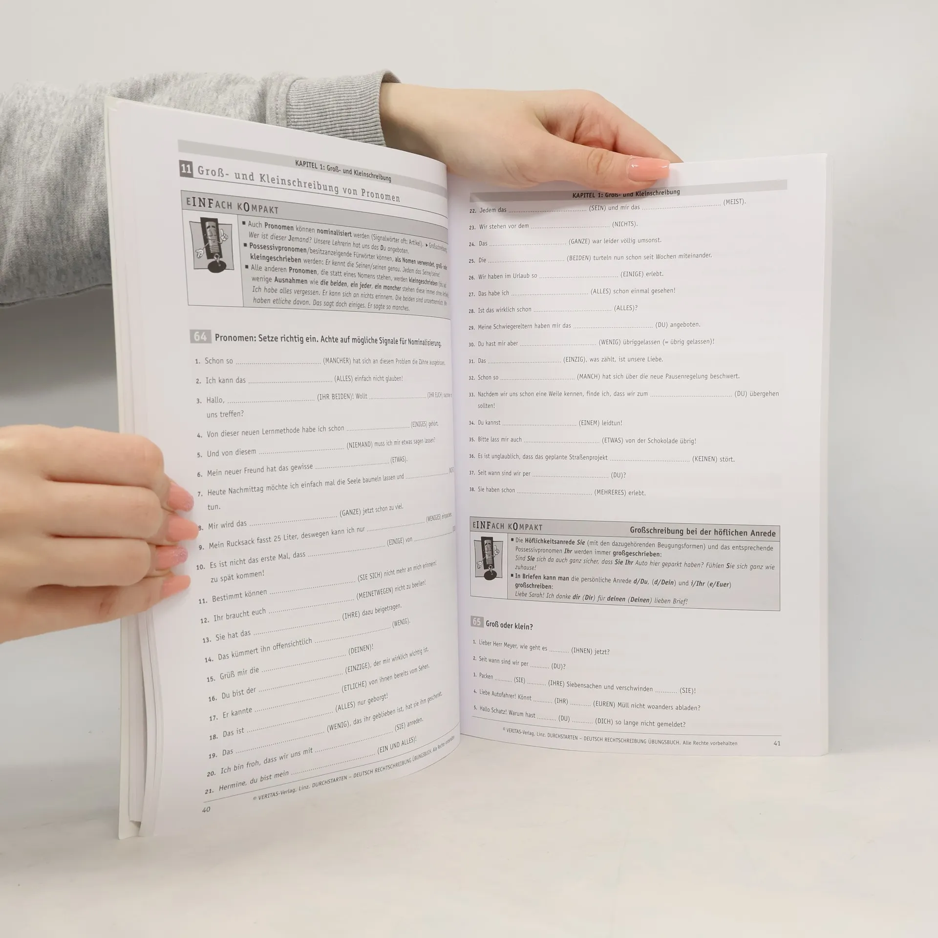 Das Übungsbuch Deutsch Rechtschreibung ist der ideale Trainingspartner zum Wiederholen, Absichern und Vertiefen. Auf kurze, prägnante Erklärungen folgen jeweils umfassende Übungen zu den Regeln der Rechtschreibung. Das Buch ist eine wertvolle Ergänzung zu Durchstarten - Deutsch Rechtschreibung, kann aber auch unabhängig davon verwendet werden. Das beiliegende Lösungsheft hilft, den Lernfortschritt zu kontrollieren.