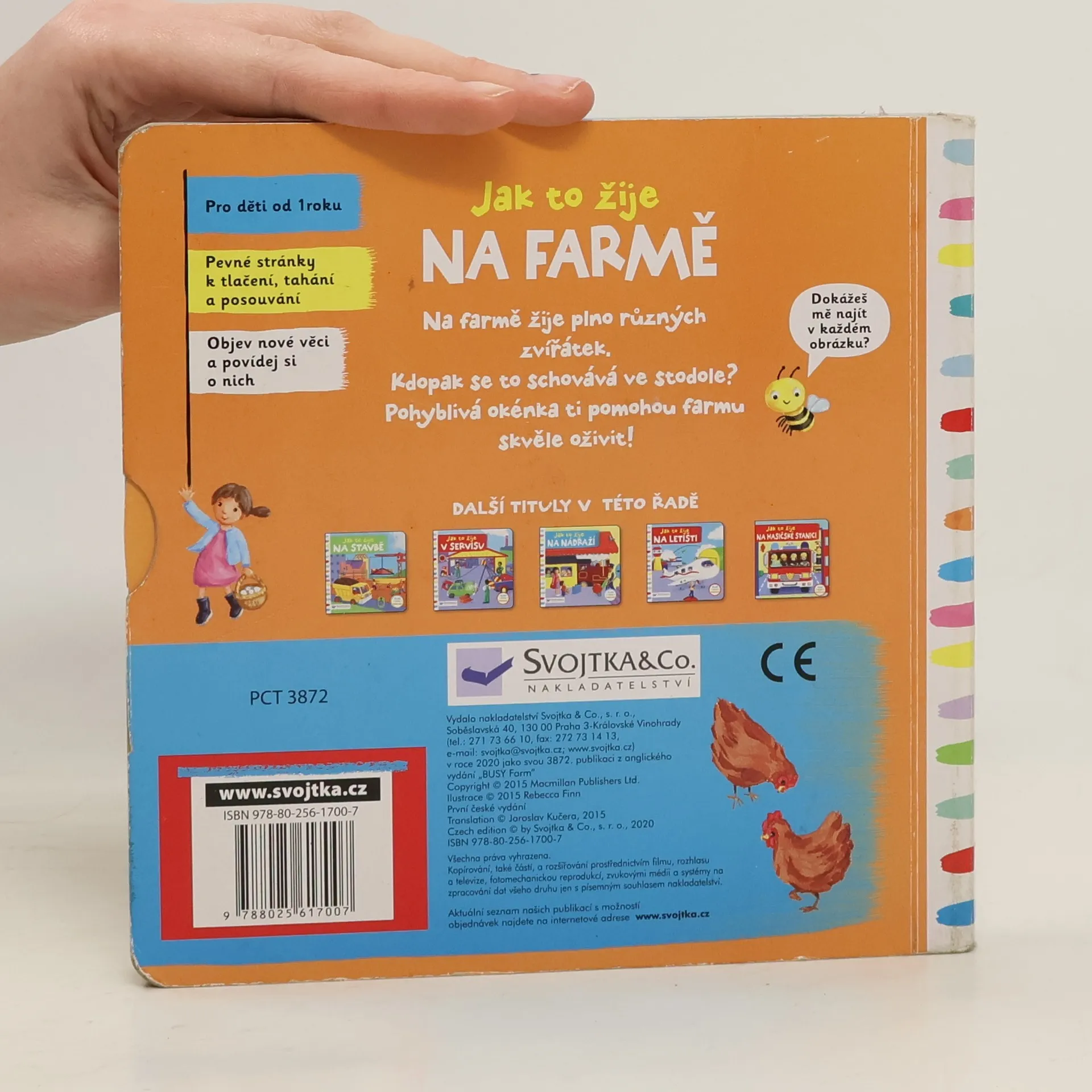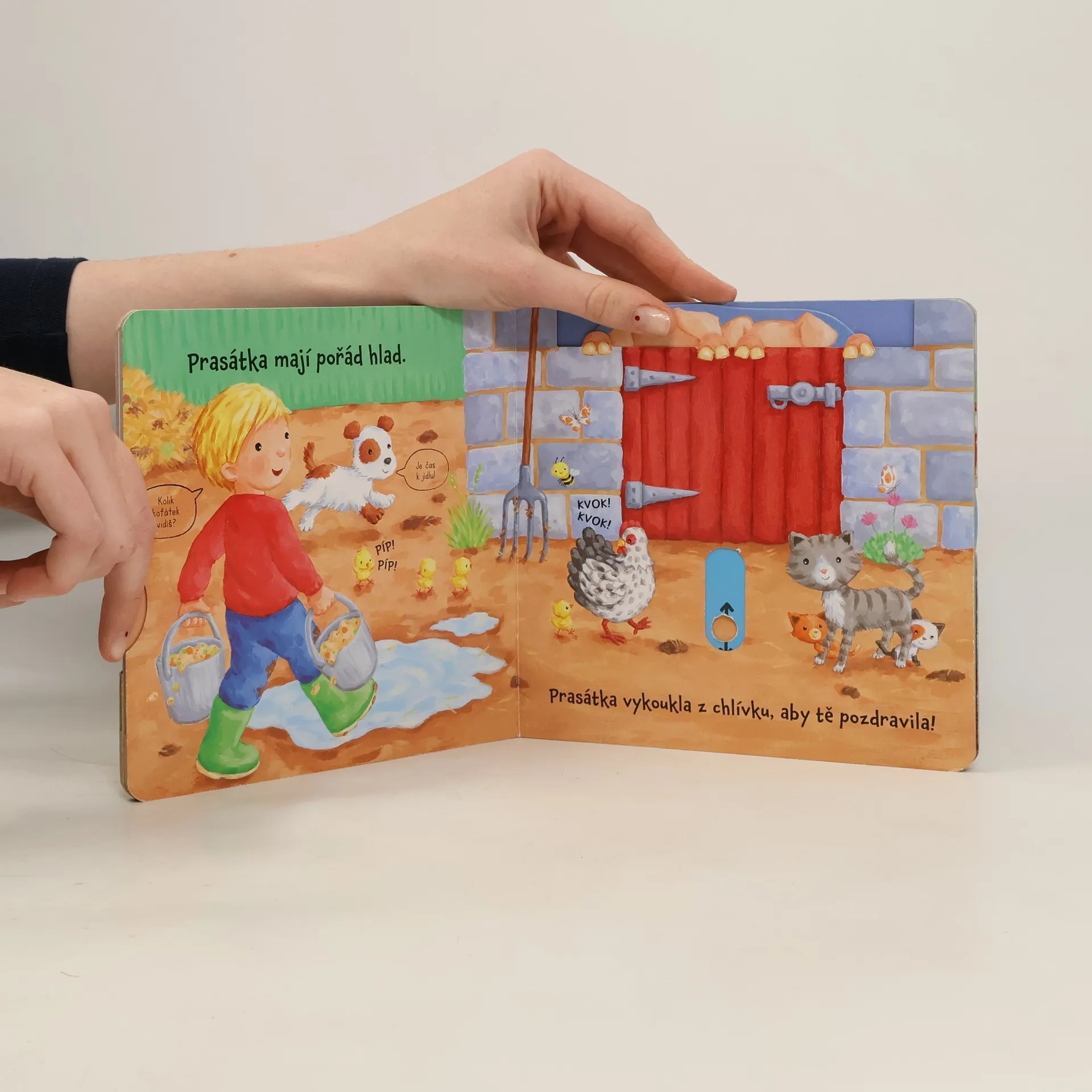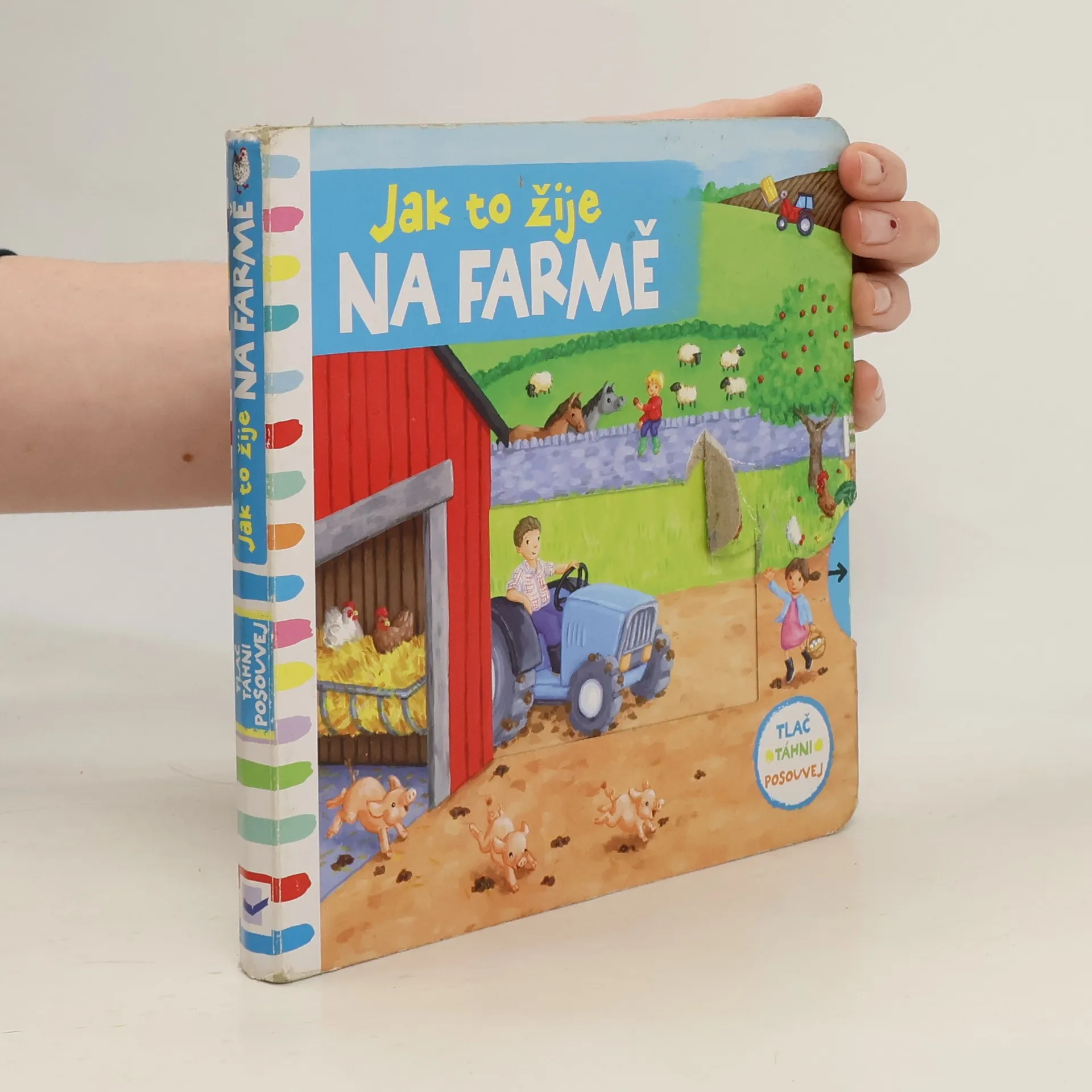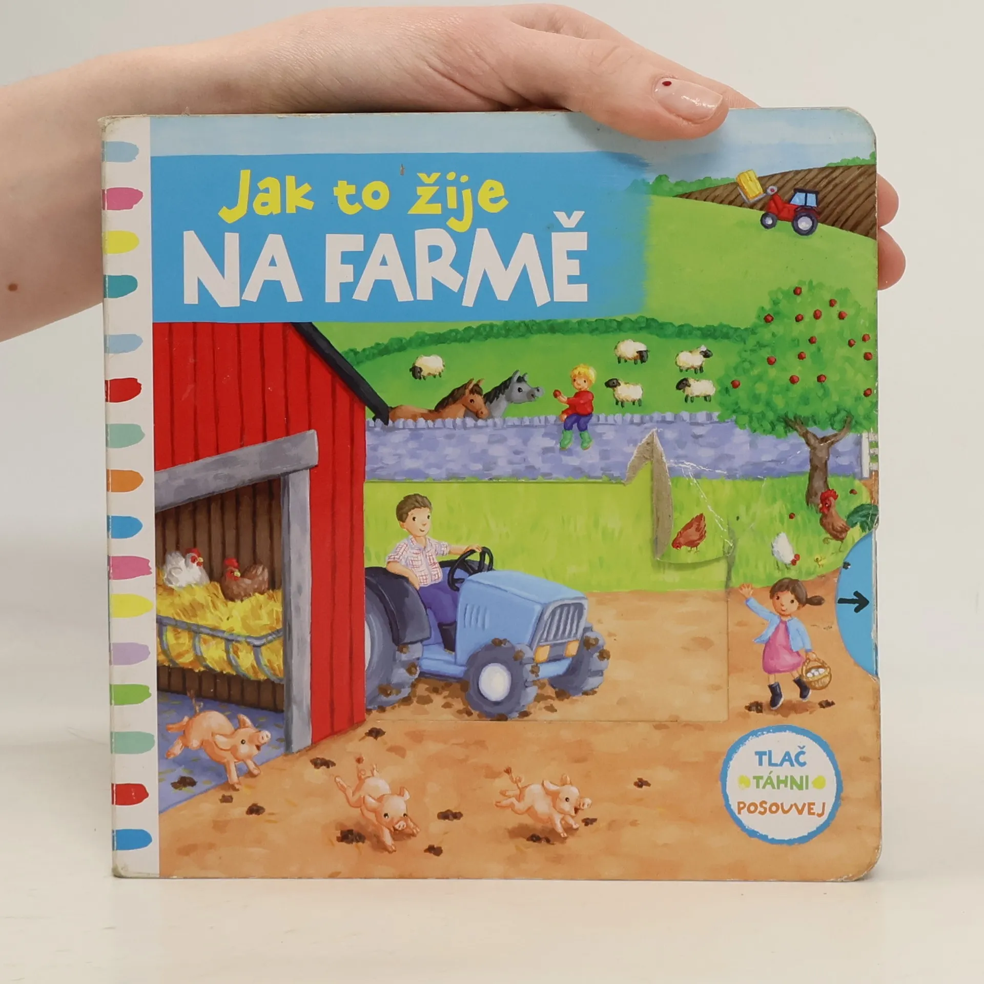 Leporelo je určeno pro děti od jednoho roku. Má pevné stránky s posuvnými a otočnými prvky, a tak si malí farmáři při prohlížení procvičí i jemnou motoriku. Vítejte na farmě! Žije tady plno různých zvířátek. Zjistíš, kdo se schovává ve stodole? Toto dětské leporelo je určeno pro děti od jednoho roku. Má pevné stránky s posuvnými a otočnými prvky, a tak si malí farmáři při prohlížení knížky současně procvičí jemnou motoriku – mohou na jednotlivých stránkách posouvat, tahat, otáčet. Objeví nové věci a mohou si o nich povídat. Tak honem na farmu – je tam opravdu rušno!
