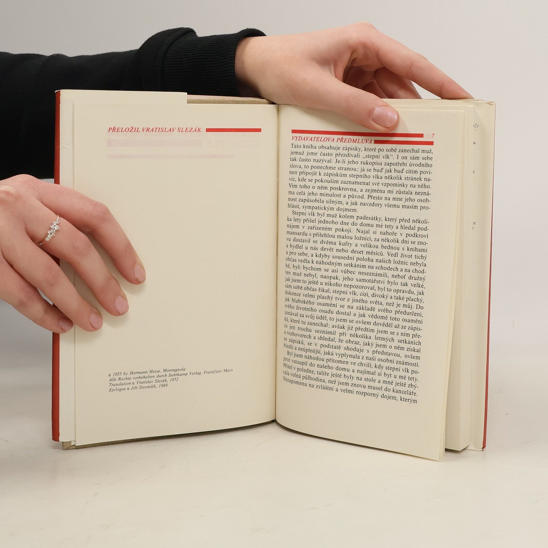 Román švýcarského spisovatele řeší krizi člověka dvacátých let, krizi, již vyvolala první světová válka otřesem víry v základní lidské hodnoty a navozením „neurózy generace“. V složité formě románu, komponovaného podle autorových slov „jako kánon nebo fuga“, nalezl Hesse možnost vylíčit v několikerém pohledu život padesátiletého intelektuála tehdejší doby, jemuž se přezdívalo stepní vlk, člověka, který hledá záchranu z tehdejšího „spořádaného hřbitova“ doby v romantickém útěku k umění, snu, lásce, přičemž propadá šílenství, z něhož je jen krůček ke zločinu. Doslov napsal Jiří Stromšík.