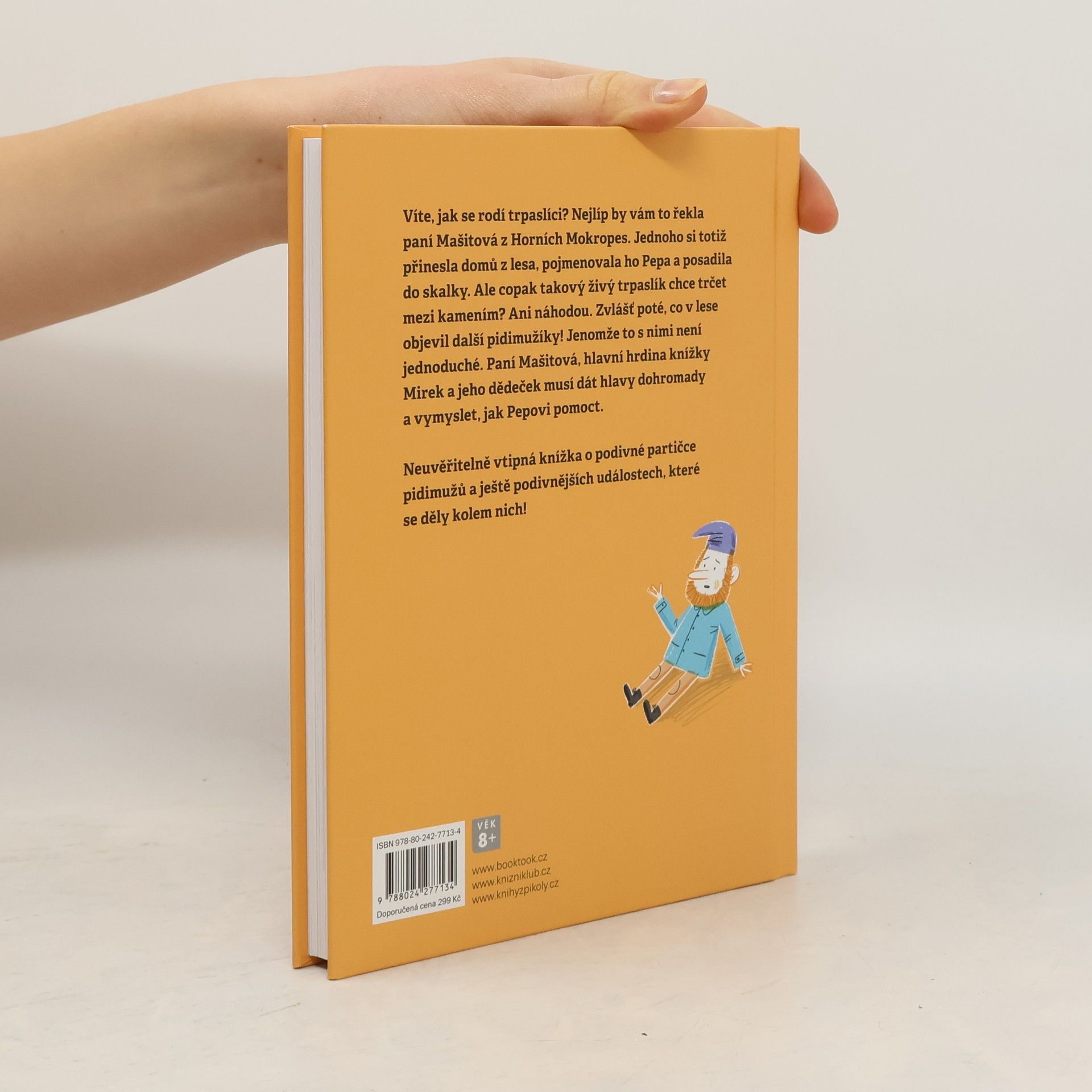 Víte, jak se rodí trpaslíci? Nejlíp by vám to řekla paní Mašitová z Horních Mokropes. Jednoho si totiž přinesla domů z lesa, pojmenovala ho Pepa a posadila do skalky. Ale copak takový živý trpaslík chce trčet mezi kamením? Ani náhodou. Zvlášť poté, co v lese objevil další pidimužíky! Jenomže to s nimi není jednoduché. Paní Mašitová, hlavní hrdina knížky Mirek a jeho dědeček musí dát hlavy dohromady a vymyslet, jak Pepovi pomoct.