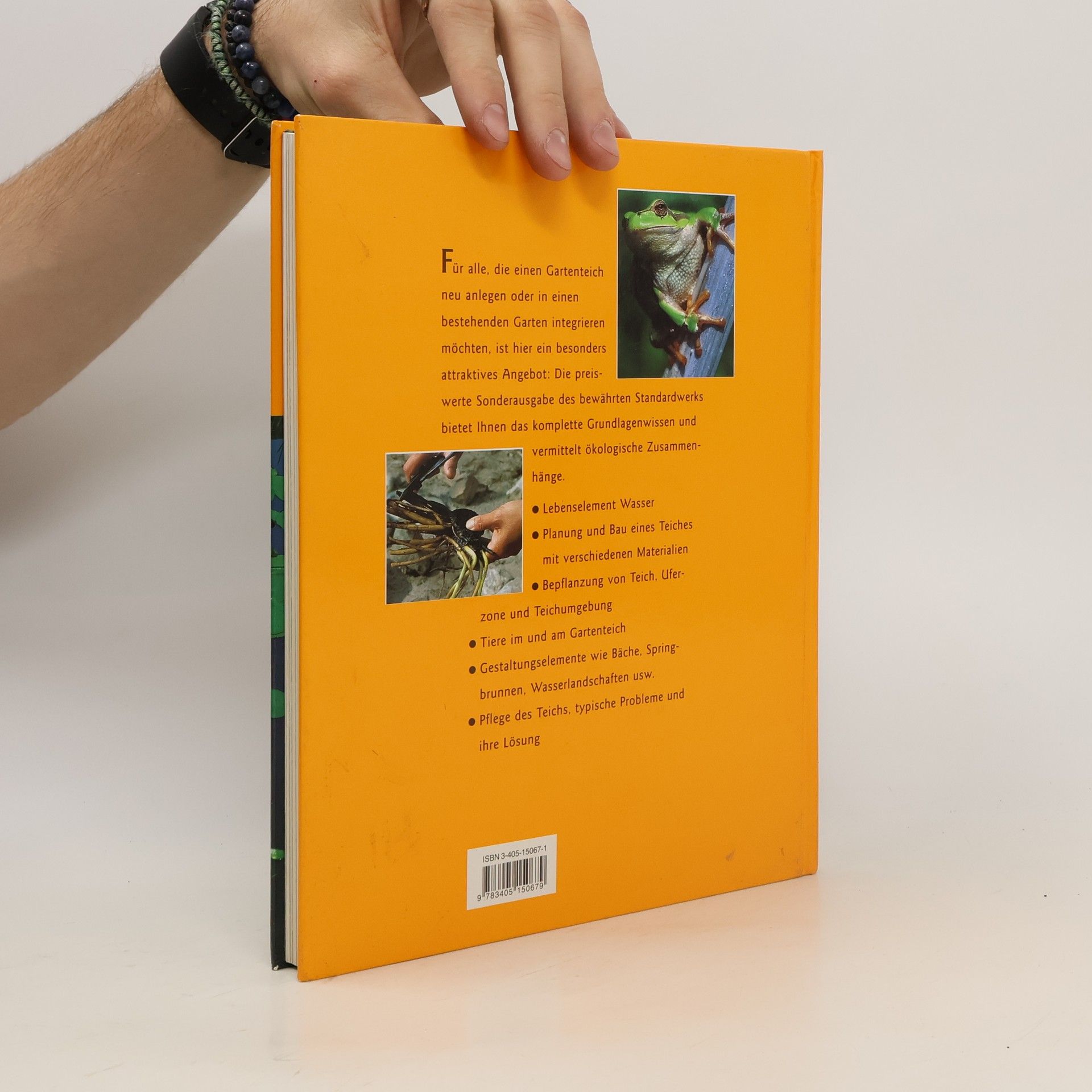 Teichanlage mit verschiedenen Materialien, ökologische Zusammenhänge, Bepflanzungsbeispiele und Pflanzenpflege, Tiere im und am Gartenteich, spezielle Elemente wie z. B. Wasserläufe und Springbrunnen, Gartenteich-Probleme im Überblick.