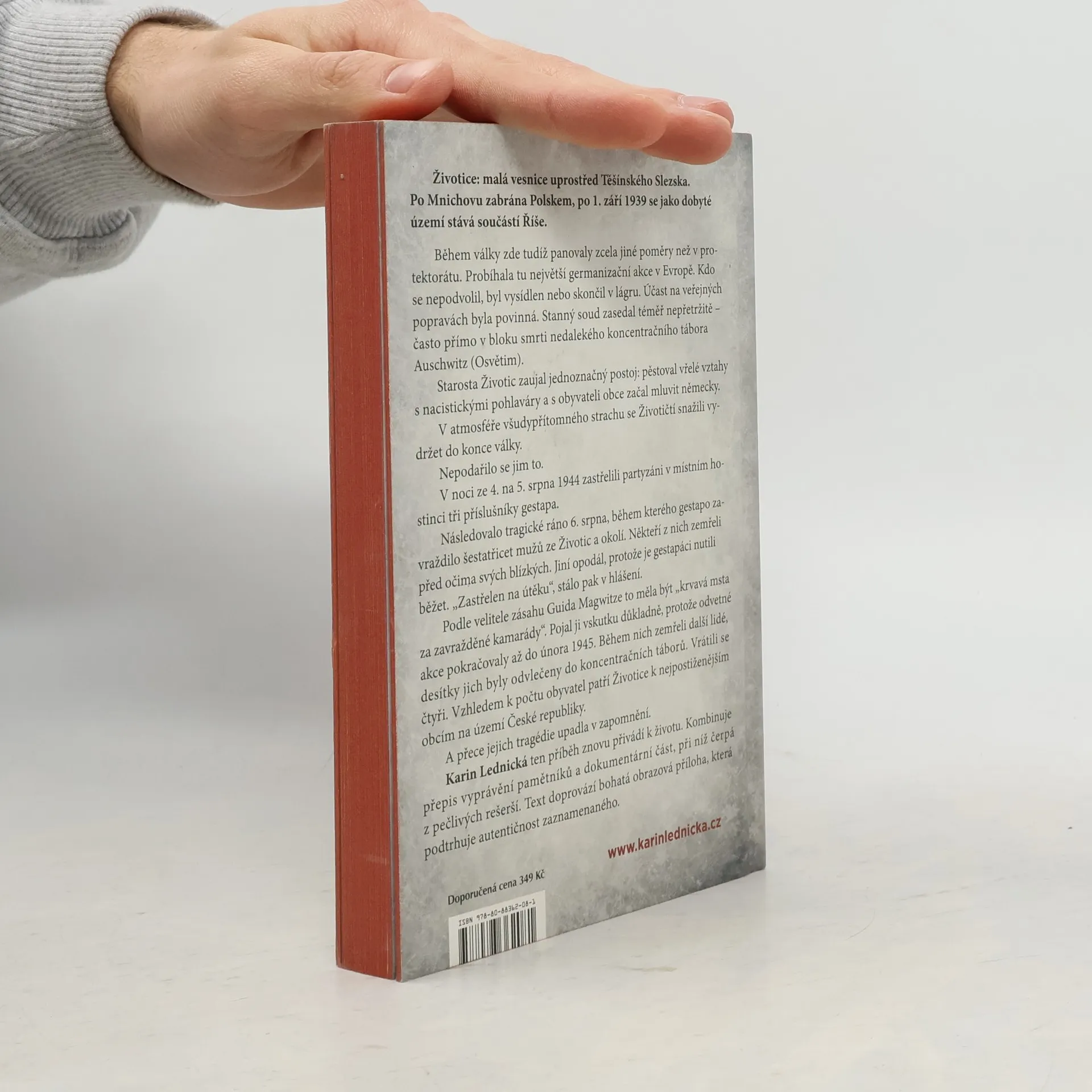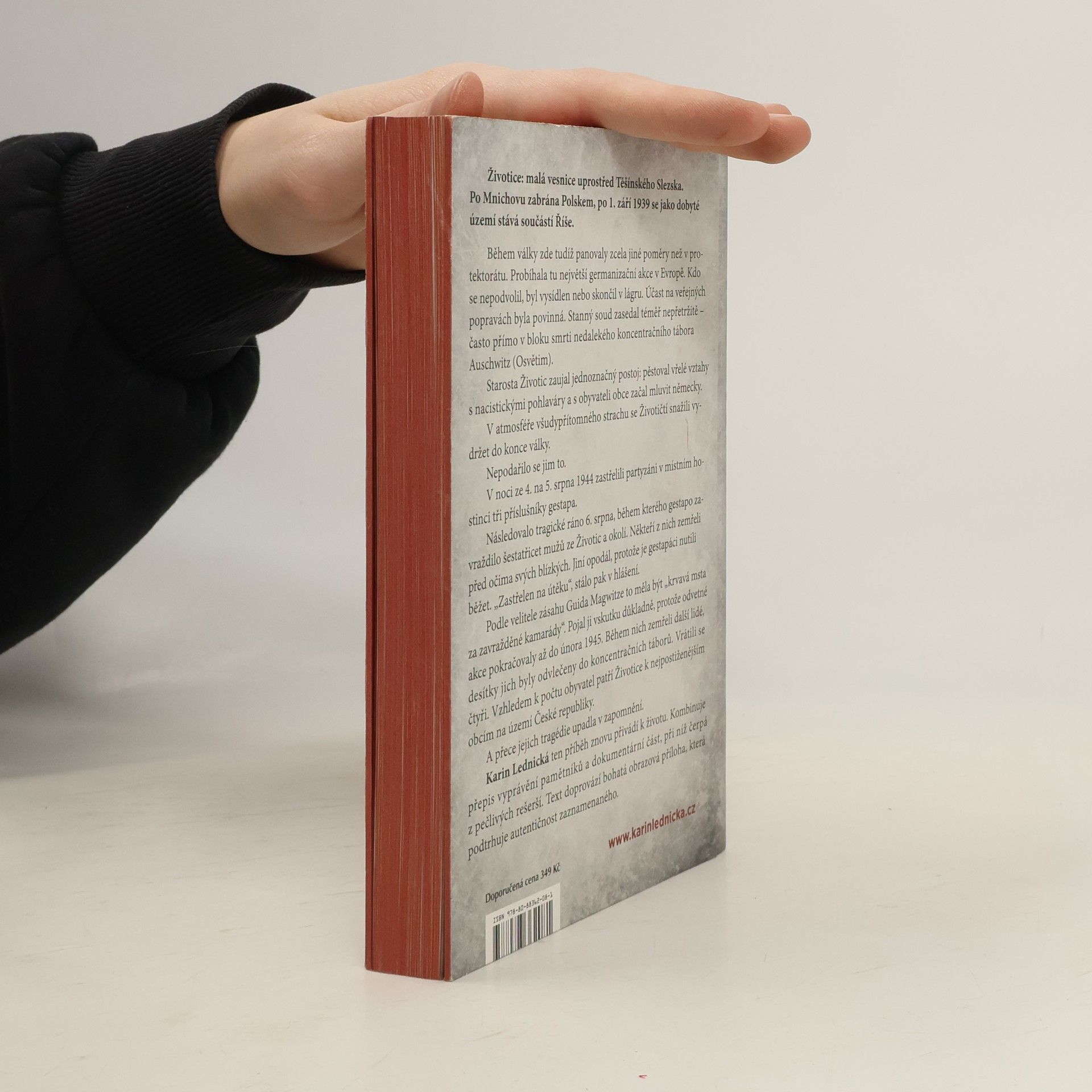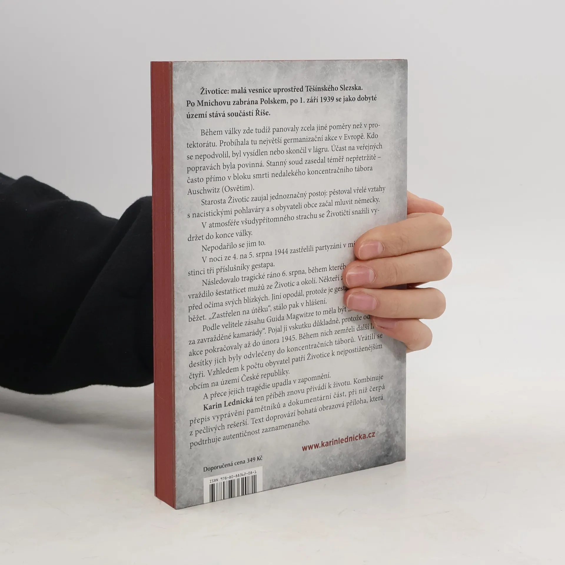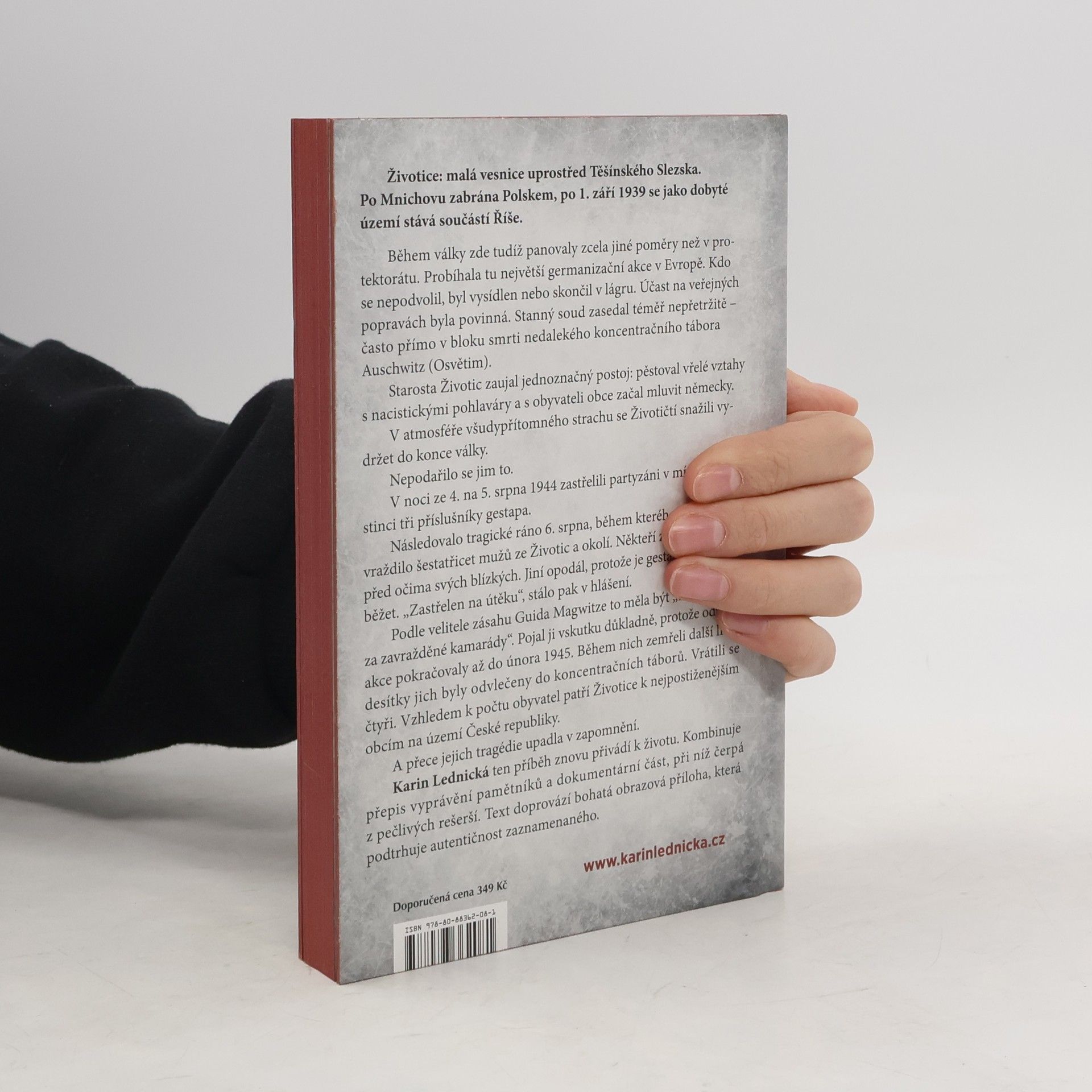 Životice: malá vesnice uprostřed Těšínského Slezska. Po Mnichovu zabrána Polskem, po 1. září 1939 se jako dobyté území stává součástí Říše. Během války zde tudíž panovaly zcela jiné poměry než v protektorátu. Probíhala tu největší germanizační akce v Evropě. Kdo se nepodvolil, byl vysídlen nebo skončil v lágru. Účast na veřejných popravách byla povinná. Stanný soud zasedal téměř nepřetržitě – často přímo v bloku smrti nedalekého koncentračního tábora Auschwitz (Osvětim). Starosta Životic zaujal jednoznačný postoj: pěstoval vřelé vztahy s nacistickými pohlaváry a s obyvateli obce začal mluvit německy. V atmosféře všudypřítomného strachu se Životičtí snažili vydržet do konce války. Nepodařilo se jim to. Karin Lednická ten příběh znovu přivádí k životu. Kombinuje přepis vyprávění pamětníků a dokumentární část, při níž čerpá z pečlivých rešerší. Text doprovází bohatá obrazová příloha, která podtrhuje autentičnost zaznamenaného.