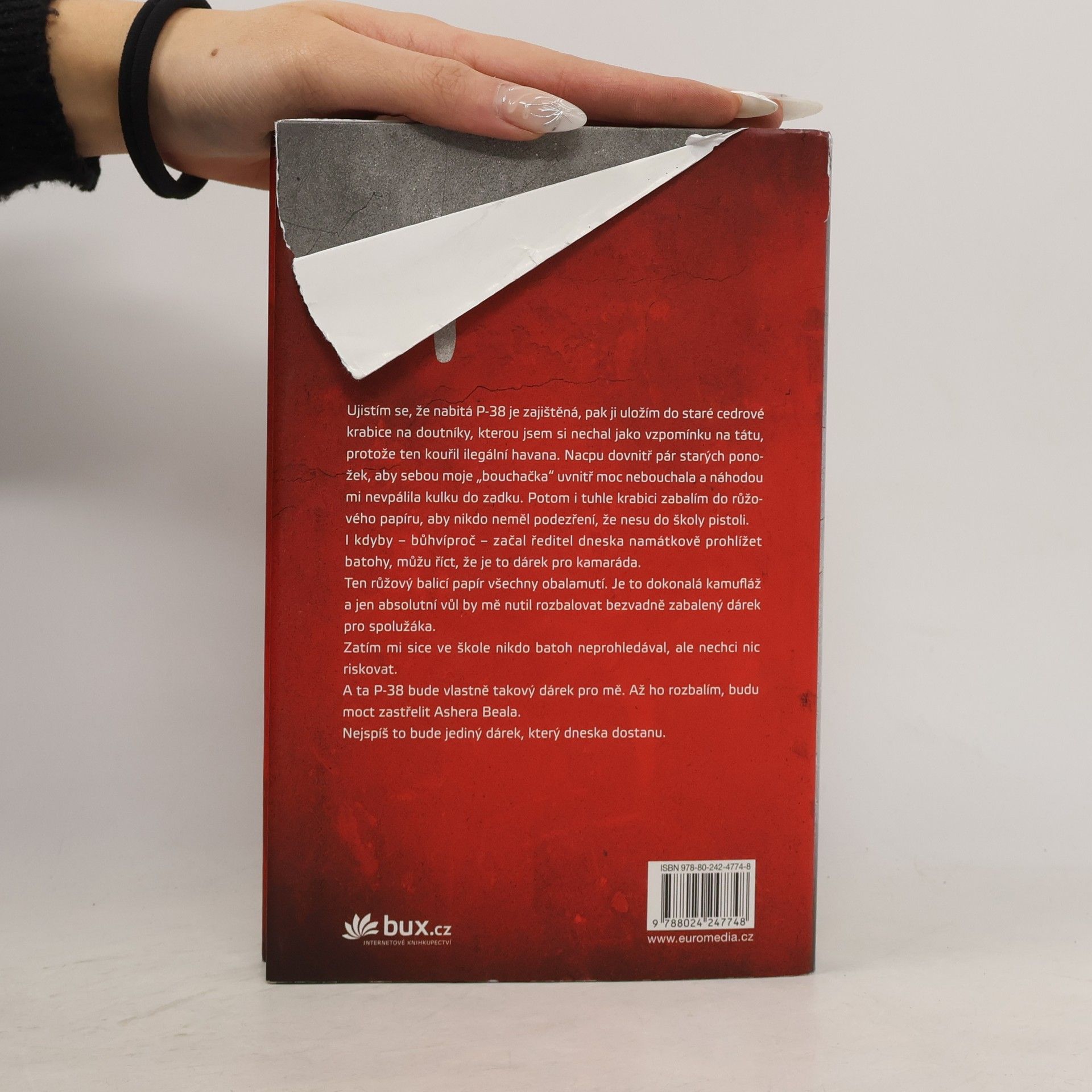 Právě dnes má Leonard Peacock narozeniny. Dnes si do batohu k učebnicím přibalí P-38, pistoli nacistického důstojníka, kterou zdědil po svém otci, a zastřelí svého bývalého nejlepšího kamaráda a potom i sebe. Už se nemůže dočkat. Ještě předtím se však musí rozloučit se čtyřmi lidmi, na nichž mu záleží: sousedem Waltem, posedlém Humphreym Bogartem, houslovým virtuózem a spolužákem Babakem, Lauren, jež miluje Ježíše (a do níž byl trochu zamilovaný zase Leonard), a herr Silvermanem, který ho na střední učí o holokaustu...