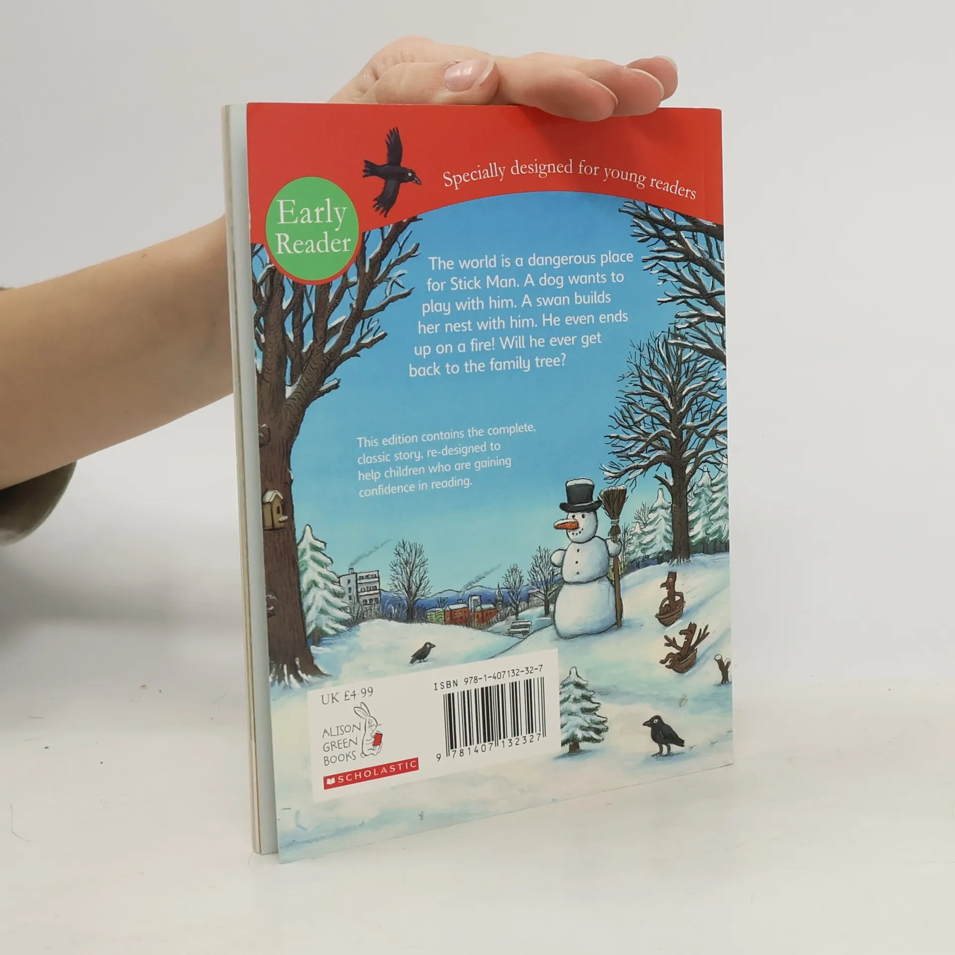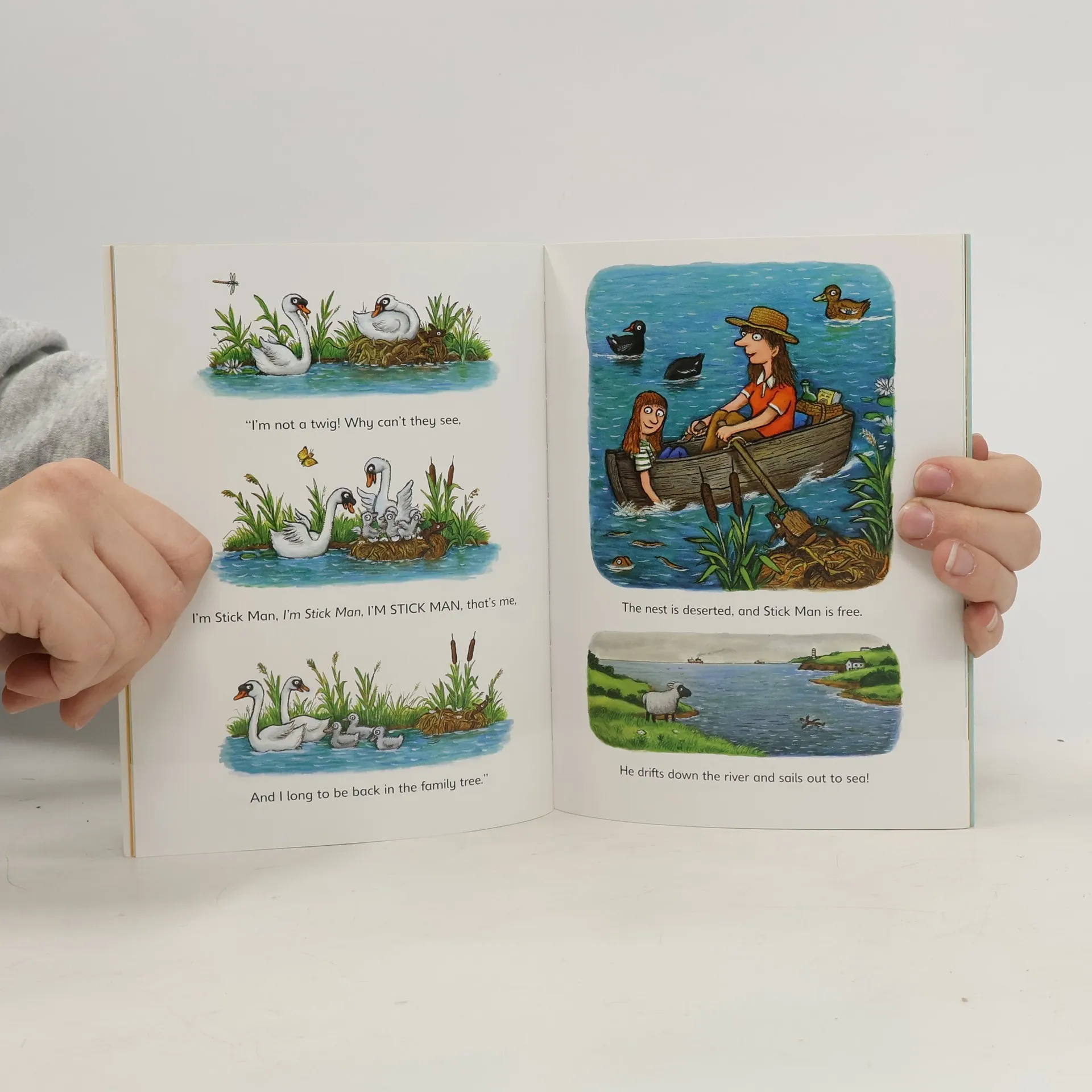 "Stick Man lives in the family tree With his Stick Lady Love and their stick children three." But it's dangerous being a Stick Man. A dog wants to play with him, a swan builds her nest with him. He even ends up on a fire! Will he ever get back to the family tree?