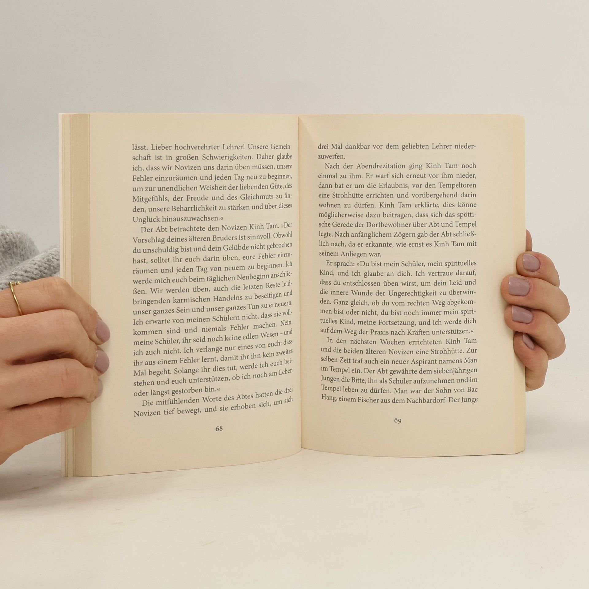 Berührende Botschaften voller Liebe und Kraft Kinh Tam fühlt sich von klein auf zu den Lehren Buddhas hingezogen. Ihrer Familie zuliebe heiratet sie, doch der Wunsch, im Kloster zu leben, ist stärker als alles andere. Eines Tages fasst sie den Mut, ihrer Bestimmung zu folgen und wird Novize, als Mann verkleidet. Glückliche Jahre vergehen, bis eine Frau aus dem Dorf verkündet, von dem Novizen ein Kind zu erwarten. Kinh Tam wird vor eine schier unlösbare Wahl gestellt... Thich Nhat Hanh schenkt einem alten vietnamesischen Volksmärchen eine zeitlose Botschaft: Trotz aller Widerstände im Leben können Geist und Herz frei und glücklich sein, wenn man der Welt mit Liebe begegnet.