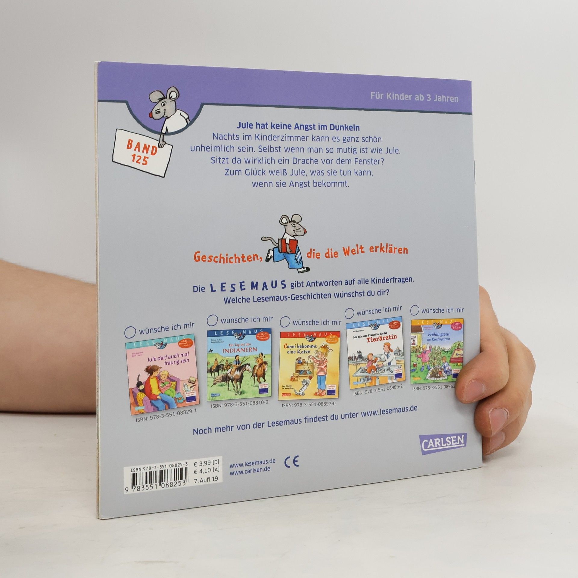 Nachts im Kinderzimmer kann es ganz schön unheimlich sein. Selbst wenn man so mutig ist wie Jule. Sitzt da wirklich ein Drache vor dem Fenster? Zum Glück weiß Jule, was sie tun kann, wenn sie Angst bekommt. Diese Geschichte erzählt von der Angst im Dunkeln und wie man sie überwinden kann. LESEMAUS – Geschichten, die die Welt erklären! Die Bilderbücher für Kinder ab 3 Jahren sind ideal zum gemeinsamen Anschauen und Vorlesen. Verständliche Texte und hochwertige Illustrationen vermitteln erstes Sachwissen zu wichtigen Themen aus dem Kinderalltag. Empfohlen von der Stiftung Lesen.