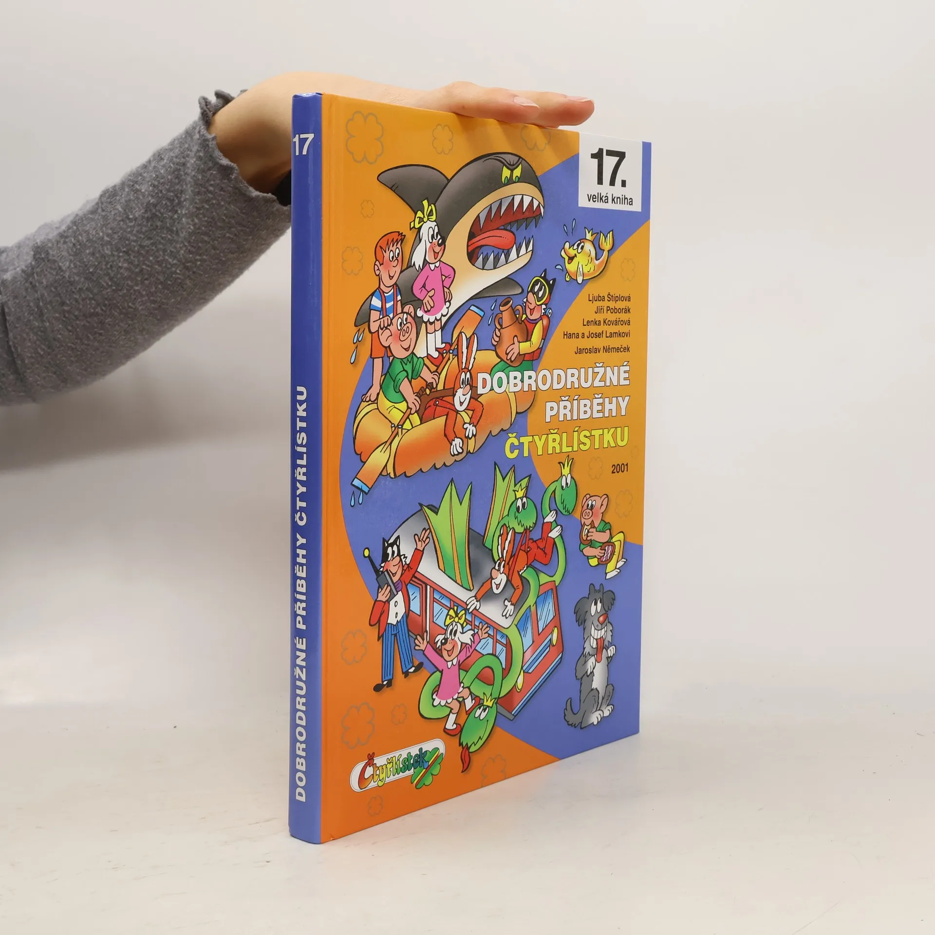 Již sedmnáctá velká kniha této oblíbené edice obsahuje příběhy z čísel 310 až 326 z roku 2001. V prvním příběhu Drak metrák prožije Čtyřlístek napínavou jízdu s drakem, který se promění ve vlak. Trochu popletené pohádky zase napraví v Pohádkové zimě a Brýle mámení odhalí dávno zapomenutou bitvu o Třeskoprsky. Jednoho malého šachového mistra naši čtyři kamarádi naučí, že i sportování má něco do sebe, a spoustu legrace zažijí se zvířátky v příběhu Máme rádi zvířata. Pinďovo neuvážené malování zase přivede na svět samotného čerta. Ve Skoku do neznáma unesou Čtyřlístek mimozemšťané a obr Barnabáš si velice oblíbí Fifinčiny buchty. Dozvíte se také, jak to dopadne, když ježibaba promění Bobíka v kocoura, i jak rozchodit sochy na Velikonočním ostrově. Naši kamarádi budou společně cestovat v čase s dvojčaty z budoucnosti nebo si zatančí na diskotéce s jeskyňkami. A nakonec zachrání Santu Klause v příběhu Vánoce nebudou. Jak je vidět, celá tato kniha je plná těch pravých čtyřlístkových dobrodružství, která můžete prožít společně s naší veselou čtyřkou přátel.