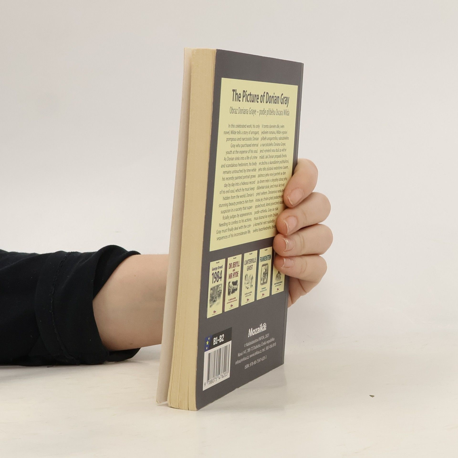 V tomto slavném díle, svém jediném románu, Wilde vypráví příběh arogantního, nabubřelého a narcistického Doriana Graye, jenž vyměnil svou duši za věčné mládí. Jak Dorian propadá životu ve zločinu a skandálním požitkářství, jeho tělo zůstává nedotčeno časem, zatímco jeho nový portrét se den za dnem mění v ohyzdný obraz jeho ďábelské duše, jenž musí skrývat před světem. Dorianova neskutečná krása jej chrání před podezřením společnosti, která povrchně soudí podle vzhledu. Gray se však musí doznat ke svým činům a konečně nést následky svého bezohledného života. Anglicko-český zrcadlový text pro mírně pokročilé In this famous work, his only novel, Wilde tells the story of the arrogant, bloated and narcissistic Dorian Gray, who exchanged his soul for eternal youth. As Dorian succumbs to life in crime and scandalous indulgence, his body remains untouched by time as his new portrait changes day by day into an ugly image of his devilish soul, which he must hide from the world. Dorian's incredible beauty protects him from the suspicion of a society that superficially judges by appearance. However, Gray must confess to his actions and finally bear the consequences of his reckless life. English-Czech mirror text for intermediate students