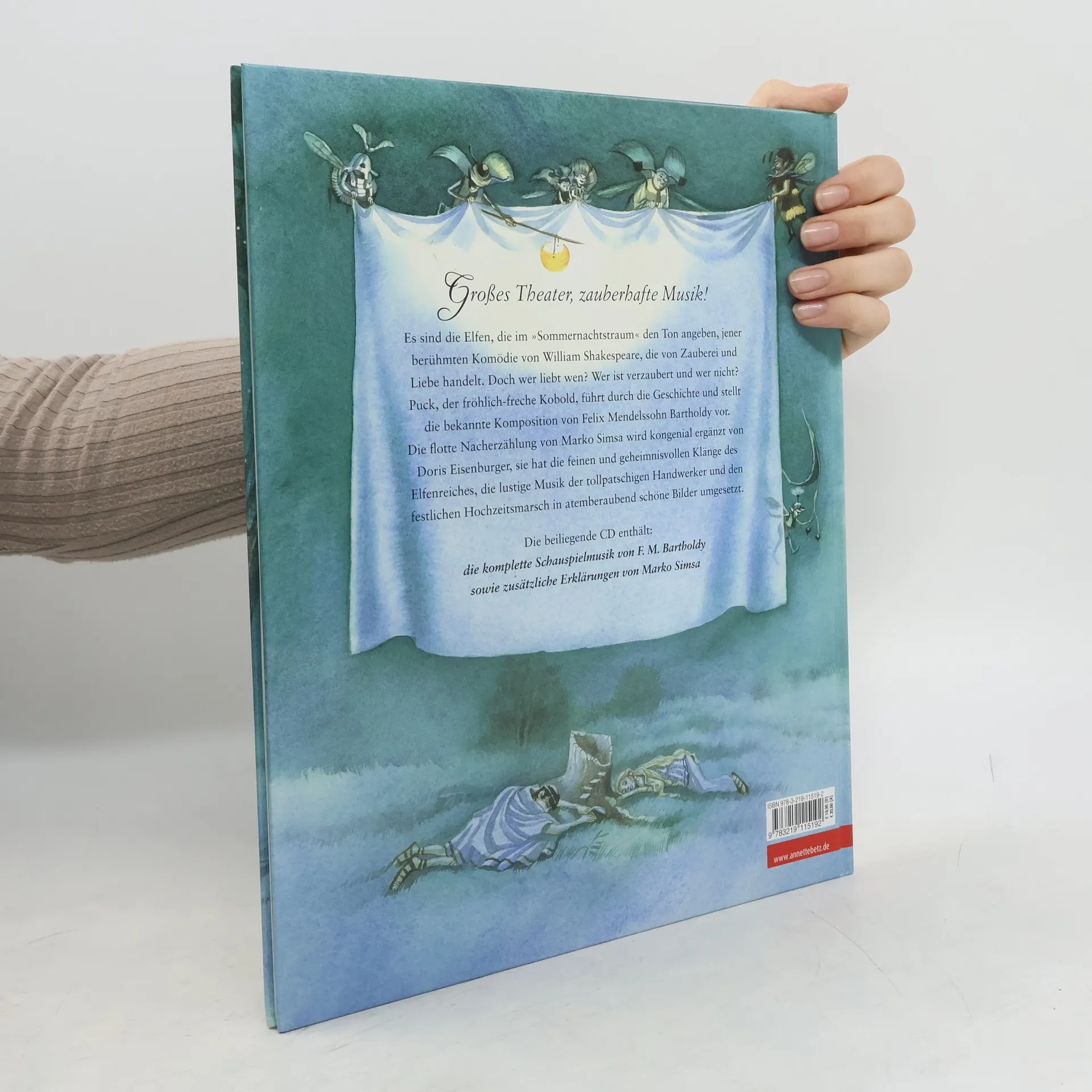 Spielerisch präsentiert Marko Simsa Shakespeares berühmte Komödie von Zauberei und Liebe mit der über 200 jahre später komponierten Musik Mendelssohn Bartholdys. Der fröhlich freche Kobold Puck führt durch die Geschichte. Auf der Begleit-CD: das gesamt Musikstück mit zusätzlichen Erklärungen (Gesamtspieldauer: 79 Minuten)