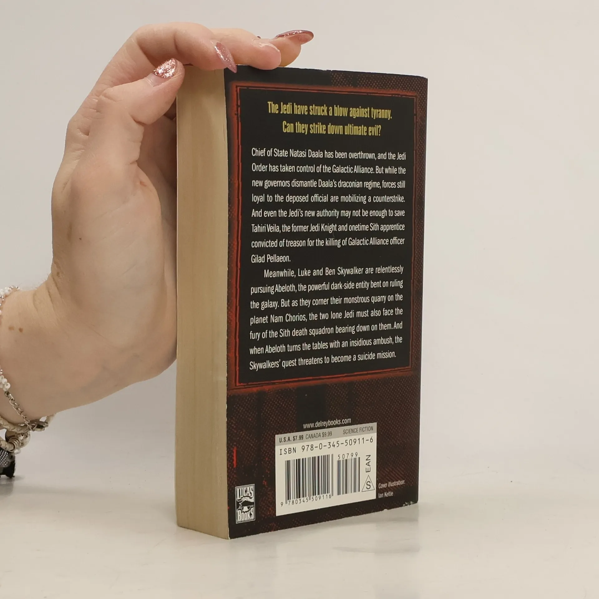 NEW YORK TIMES BESTSELLER The Jedi have struck a blow against tyranny. Can they strike down ultimate evil? Chief of State Natasi Daala has been overthrown, and the Jedi Order has taken control of the Galactic Alliance. But while the new governors dismantle Daala’s draconian regime, forces still loyal to the deposed official are mobilizing a counterstrike. And even the Jedi’s new authority may not be enough to save Tahiri Veila, the former Jedi Knight and onetime Sith apprentice convicted of treason for the killing of Galactic Alliance officer Gilad Pellaeon. Meanwhile, Luke and Ben Skywalker are relentlessly pursuing Abeloth, the powerful dark-side entity bent on ruling the galaxy. But as they corner their monstrous quarry on the planet Nam Chorios, the two lone Jedi must also face the fury of the Sith death squadron bearing down on them. And when Abeloth turns the tables with an insidious ambush, the Skywalkers’ quest threatens to become a suicide mission.