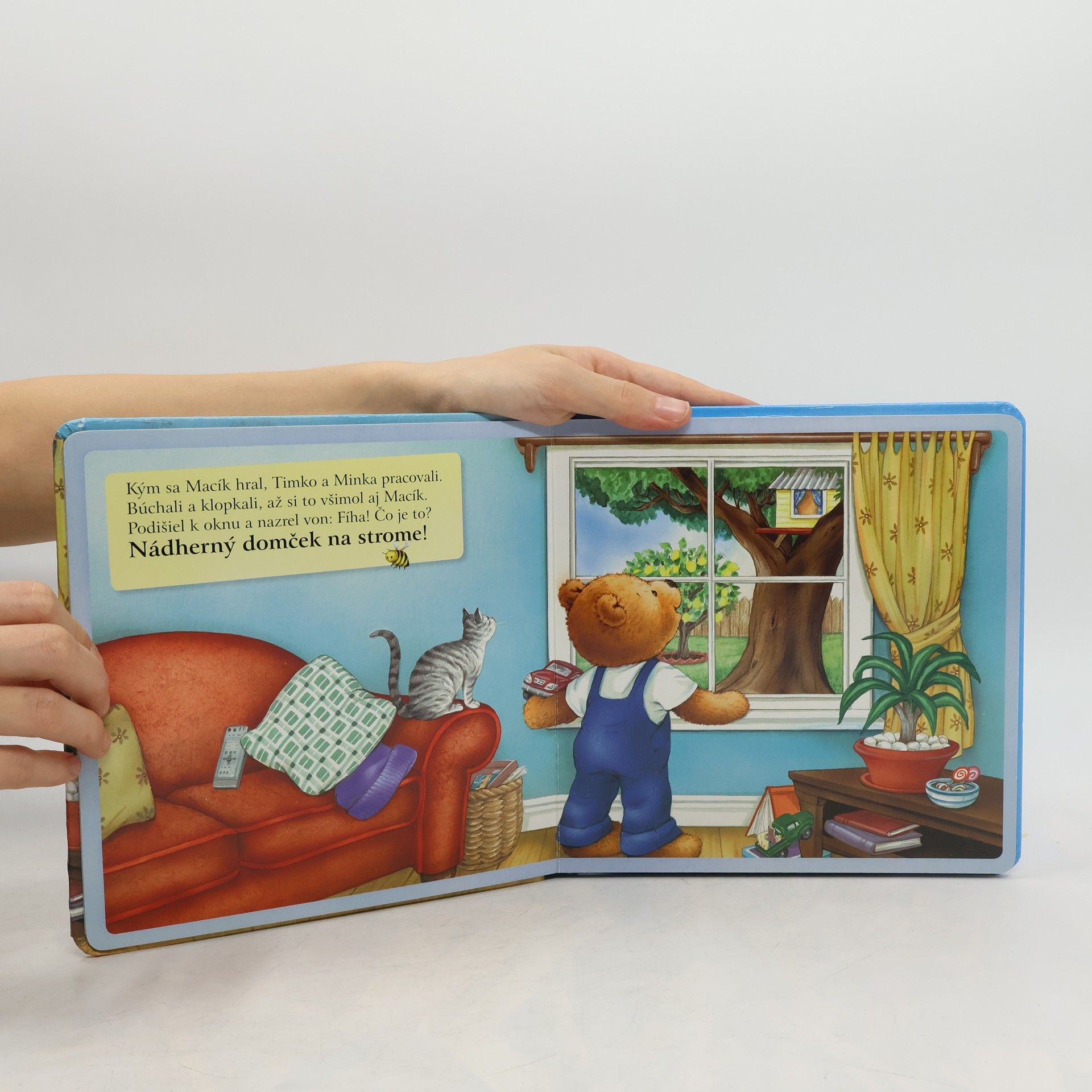 Jeden zo štyroch príbehov o Macíkovi, určený pre deti od troch rokov. Macík nechcel svojim kamarátom pomôcť a zostal sám. Keď mu bolo smutno, dostal nápad, ako všetkých poteší.