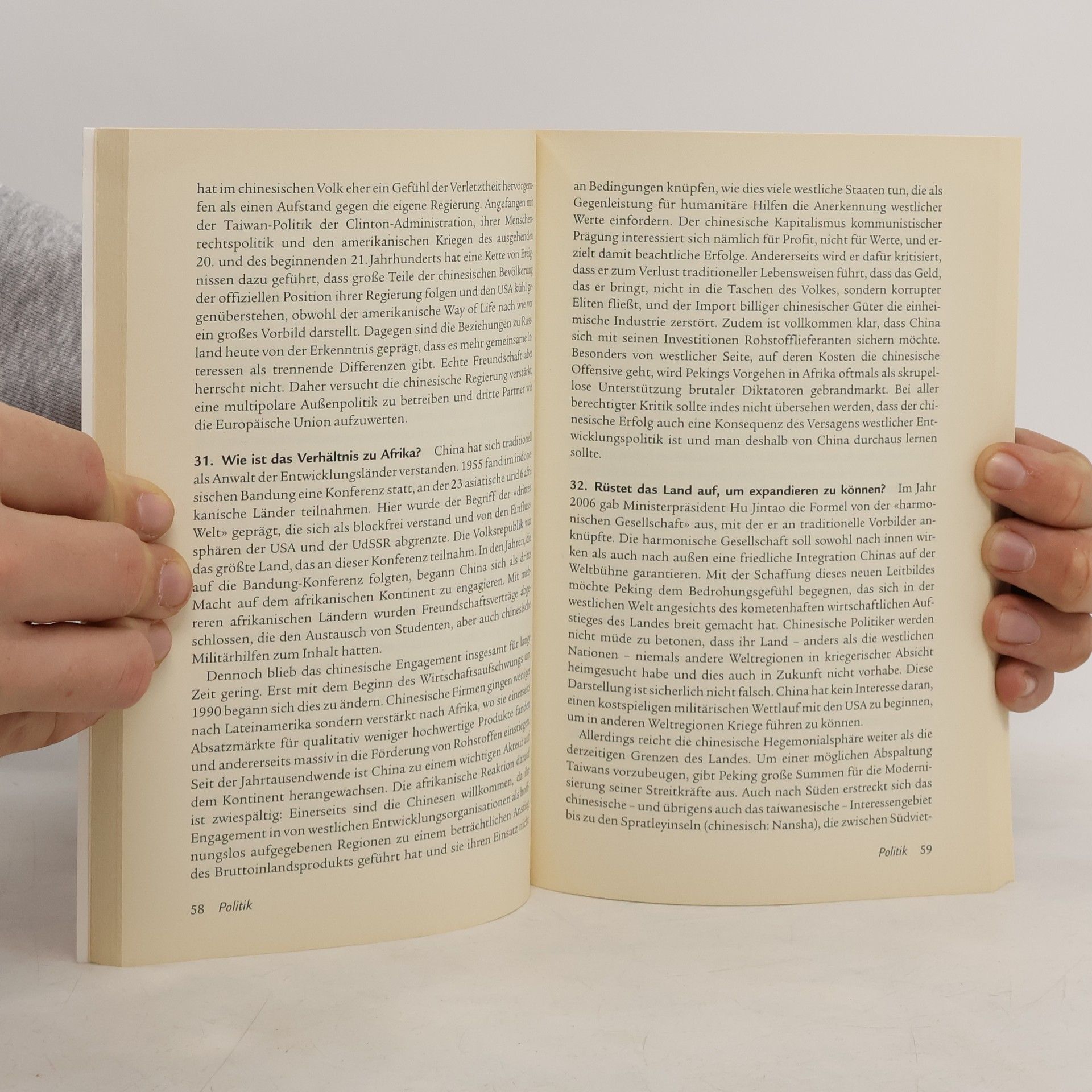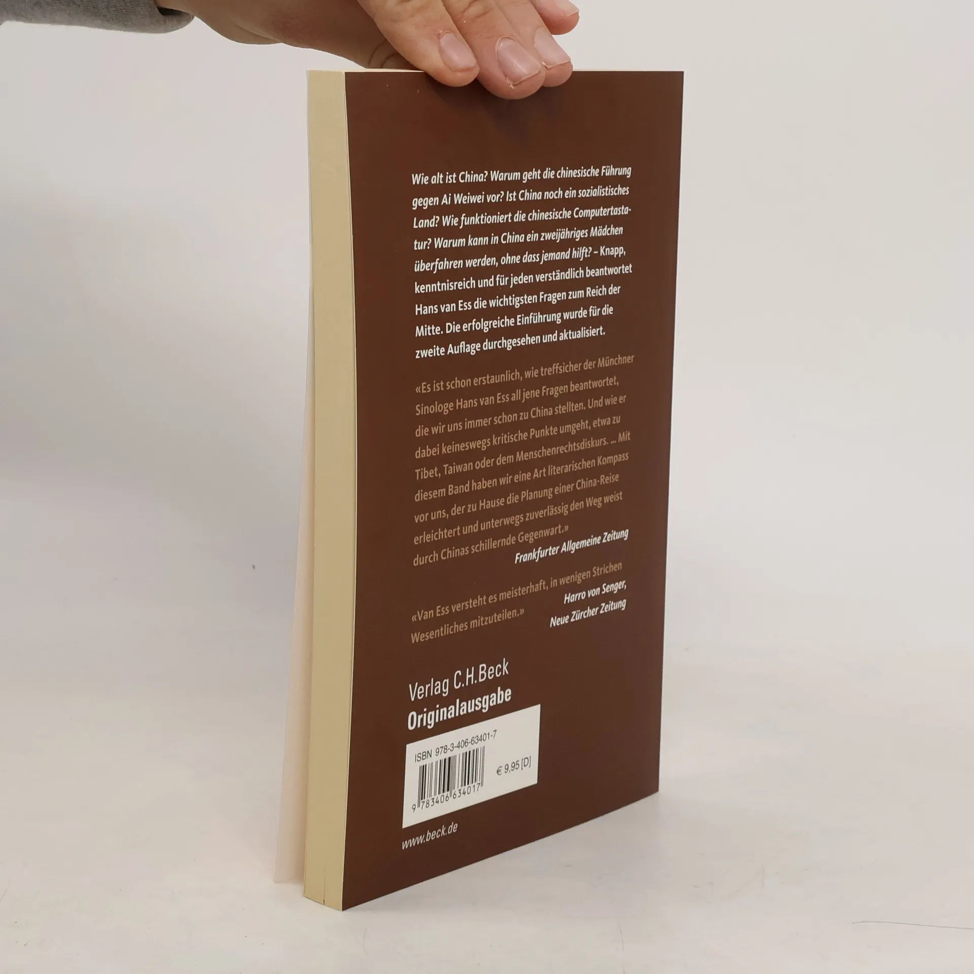 Wie alt ist China? – Ist China noch ein sozialistisches Land? – Welchen Zugang haben Chinesen zum Internet? – Wie funktioniert die chinesische Computertastatur? – Was sind die größten Erfindungen Chinas? – Welche Rolle spielt der Sport? – Denken die Chinesen anders? – Muss man darauf achten, dass Chinesen ihr Gesicht nicht verlieren? – Diese und andere Fragen beantwortet Hans van Ess knapp, kenntnisreich und für jeden verständlich. Das Buch enthält ganz einfache Fragen, die teilweise gar nicht so leicht zu beantworten sind, aber auch schwierige Fragen mit überraschend einfachen Antworten. Insgesamt bieten die Fragen und Antworten eine ebenso umfassende wie kurzweilige Einführung in das Reich der Mitte.