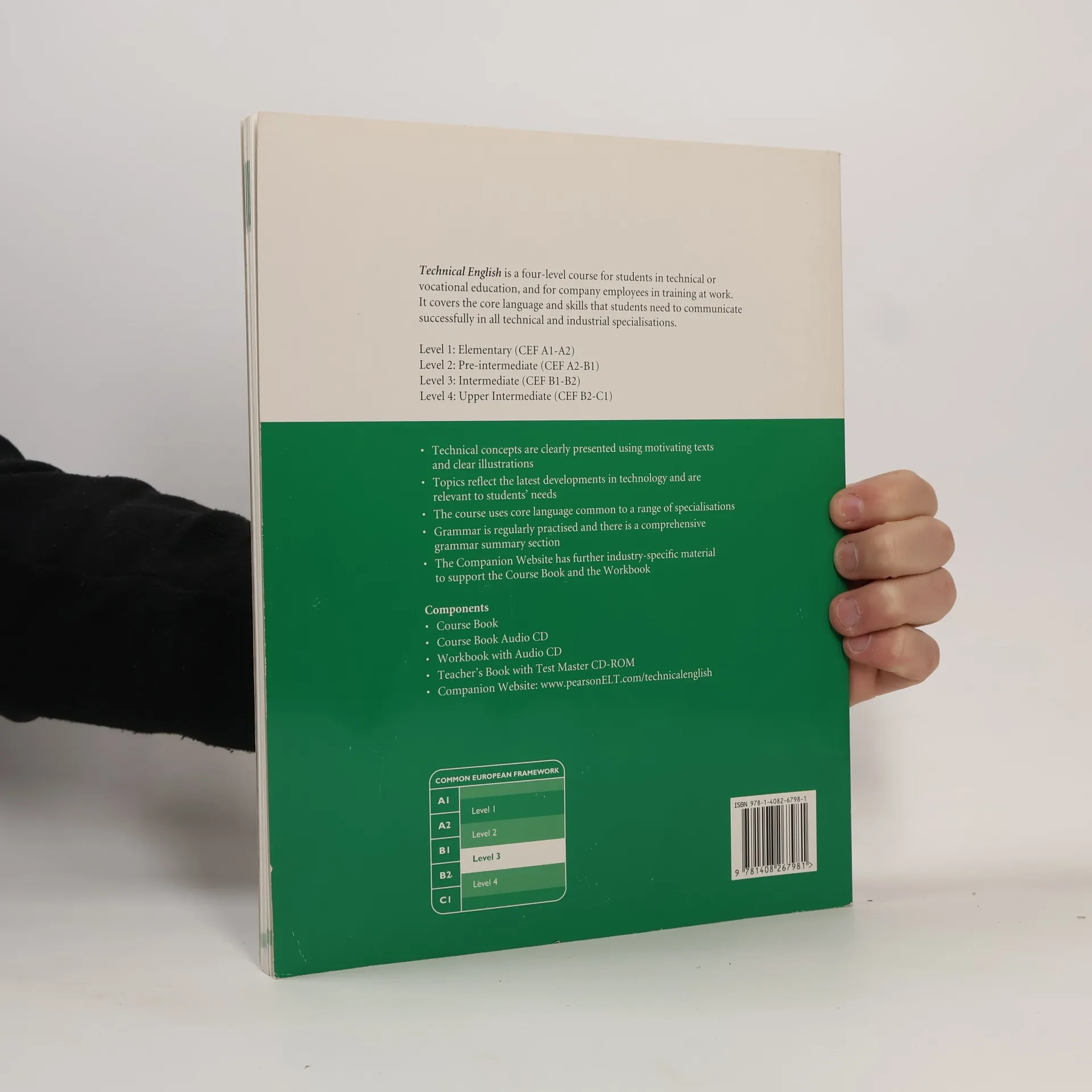 Technical English to praktyczny kurs dla studentów kierunków technicznych, jak również osób pracujących w branżach związanych z produkcją i technologią. Jego autor uwzględnił również potrzeby nauczycieli niebędących specjalistami w zagadnieniach technicznych. Co czyni Technical English kursem unikatowym? Stymulujące tematy z dziedzin interesujących studentów szkół i uczelni technicznych. Przejrzysta prezentacja leksyki związanej z najnowszymi technologiami: airboard, space travel, robotics, entertainment systems, wind forms, high tech in sports equipment. Sylabus, który pomaga szybko nabyć umiejętności efektywnego komunikowania się w miejscu pracy. Regularne powtórki co dwa rozdziały systematycznie utrwalające struktury leksykalne i gramatyczne. Podsumowanie gramatyki i sekcja Reference na końcu podręcznika z wytłumaczeniem technicznych skrótów i symboli. Zeszyt ćwiczeń konsolidujący materiał lekcyjny i zachęcający do samodzielnej nauki. Linki do stron internetowych wzbogacających zakres słownictwa z różnych branż.
