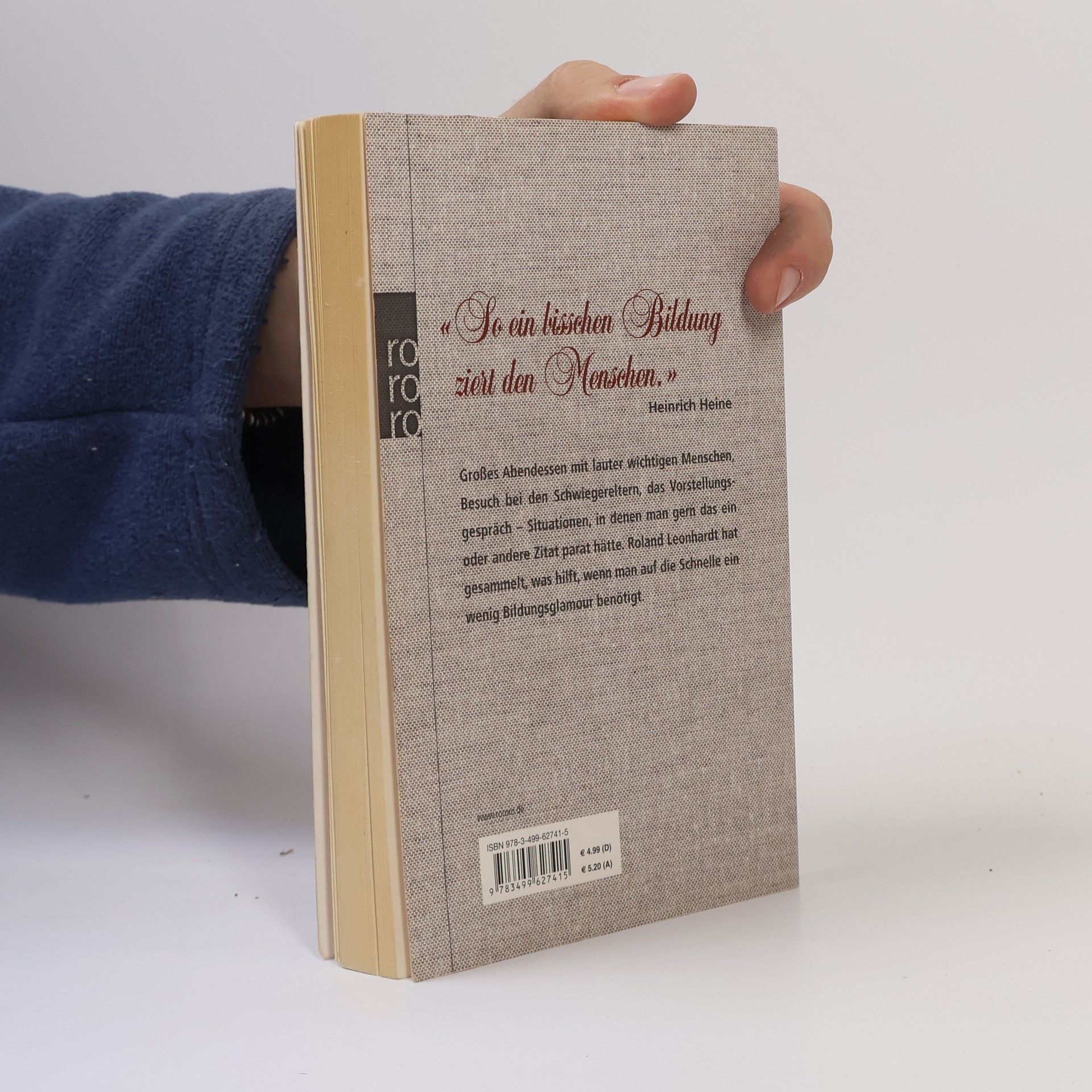 «So ein bisschen Bildung ziert den Menschen.»(Heinrich Heine)Großes Abendessen mit lauter wichtigen Menschen, Besuch bei den Schwiegereltern, das Vorstellungsgespräch – Situationen, in denen man gern das ein oder andere Zitat parat hätte. Roland Leonhardt hat gesammelt, was hilft, wenn man auf die Schnelle ein wenig Bildungsglamour benötigt.