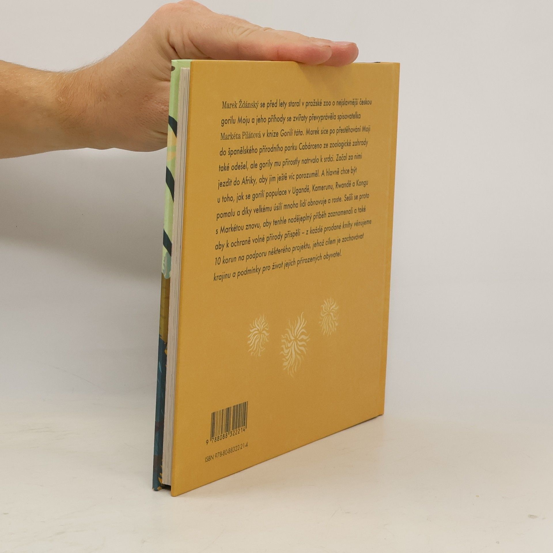 Marek Ždánský se před lety staral v pražské zoo o nejslavnější českou gorilu Moju a jeho příhody se zvířaty převyprávěla spisovatelka Markéta Pilátová v knize Gorilí táta. Marek sice po přestěhování Moji do španělského přírodního parku Cabárceno ze zoologické zahrady také odešel, ale gorily mu přirostly natrvalo k srdci. Začal za nimi jezdit do Afriky, aby jim ještě víc porozuměl. A hlavně chce být u toho, jak se gorilí populace v Ugandě, Kamerunu, Rwandě a Kongu pomalu a díky velkému úsilí mnoha lidí obnovuje a roste. Sešli se proto s Markétou znovu, aby tenhle nadějeplný příběh zaznamenali a také aby k ochraně volné přírody přispěli - z každé prodané knihy věnujeme 10 korun na podporu některého projektu, jehož cílem je zachovávat krajinu a podmínky pro život jejích přirozených obyvatel.