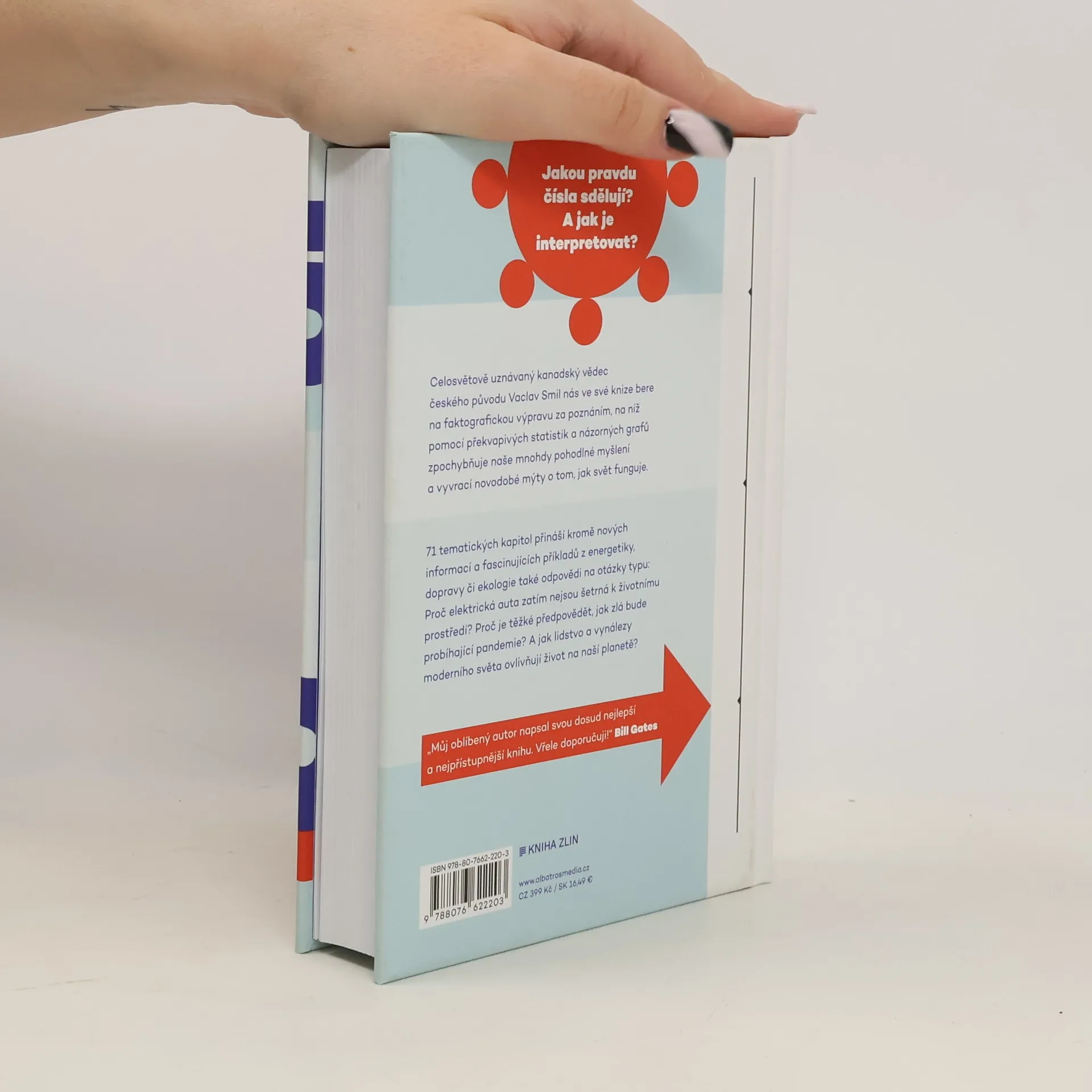 71 věcí, které byste měli vědět o světě Čísla nelžou. Ale jakou pravdu sdělují? Jakou pravdu čísla sdělují? A jak je interpretovat? Celosvětově uznávaný kanadský vědec českého původu Vaclav Smil nás ve své knize bere na faktografickou výpravu za poznáním, na níž pomocí překvapivých statistik a názorných grafů zpochybňuje naše mnohdy pohodlné myšlení a vyvrací novodobé mýty o tom, jak svět funguje. 71 tematických kapitol přináší kromě nových informací a fascinujících příkladů z energetiky, dopravy či ekologie také odpovědi na otázky typu: Proč elektrická auta zatím nejsou šetrná k životnímu prostředí? Proč je těžké předpovědět, jak zlá bude probíhající pandemie? A jak lidstvo a vynálezy moderního světa ovlivňují život na naší planetě?