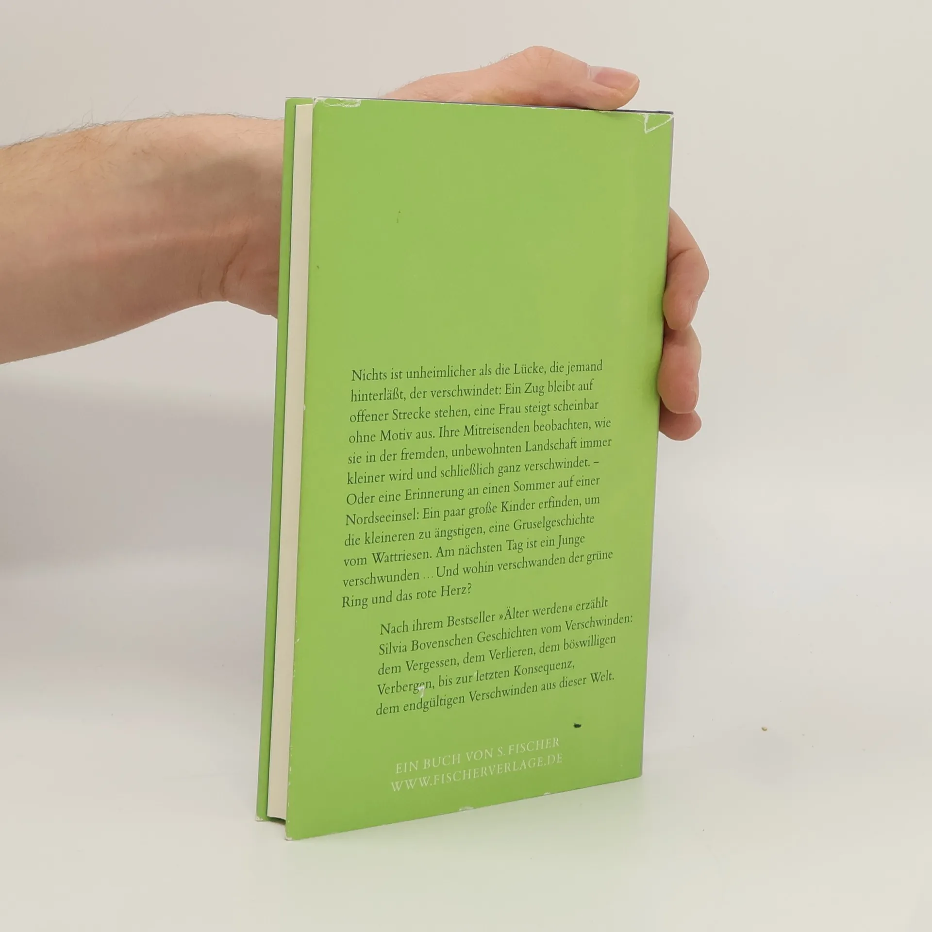 Nichts ist unheimlicher als die Lücke, die jemand hinterläßt, der verschwindet: Ein Zug bleibt auf offener Strecke stehen, eine Frau steigt scheinbar ohne Motiv aus. Ihre Mitreisenden beobachten, wie sie in der fremden, unbewohnten Landschaft immer kleiner wird und schließlich ganz verschwindet. – Oder eine Erinnerung an einen Sommer auf einer Nordseeinsel: Ein paar große Kinder erfinden, um die kleineren zu ängstigen, eine Gruselgeschichte vom Wattriesen. Am nächsten Tag ist ein Junge verschwunden ... Und wohin verschwanden der grüne Ring und das rote Herz? Nach ihrem Bestseller »Älter werden« erzählt Silvia Bovenschen Geschichten vom Verschwinden: dem Vergessen, dem Verlieren, dem böswilligen Verbergen, bis zur letzten Konsequenz, dem endgültigen Verschwinden aus dieser Welt.