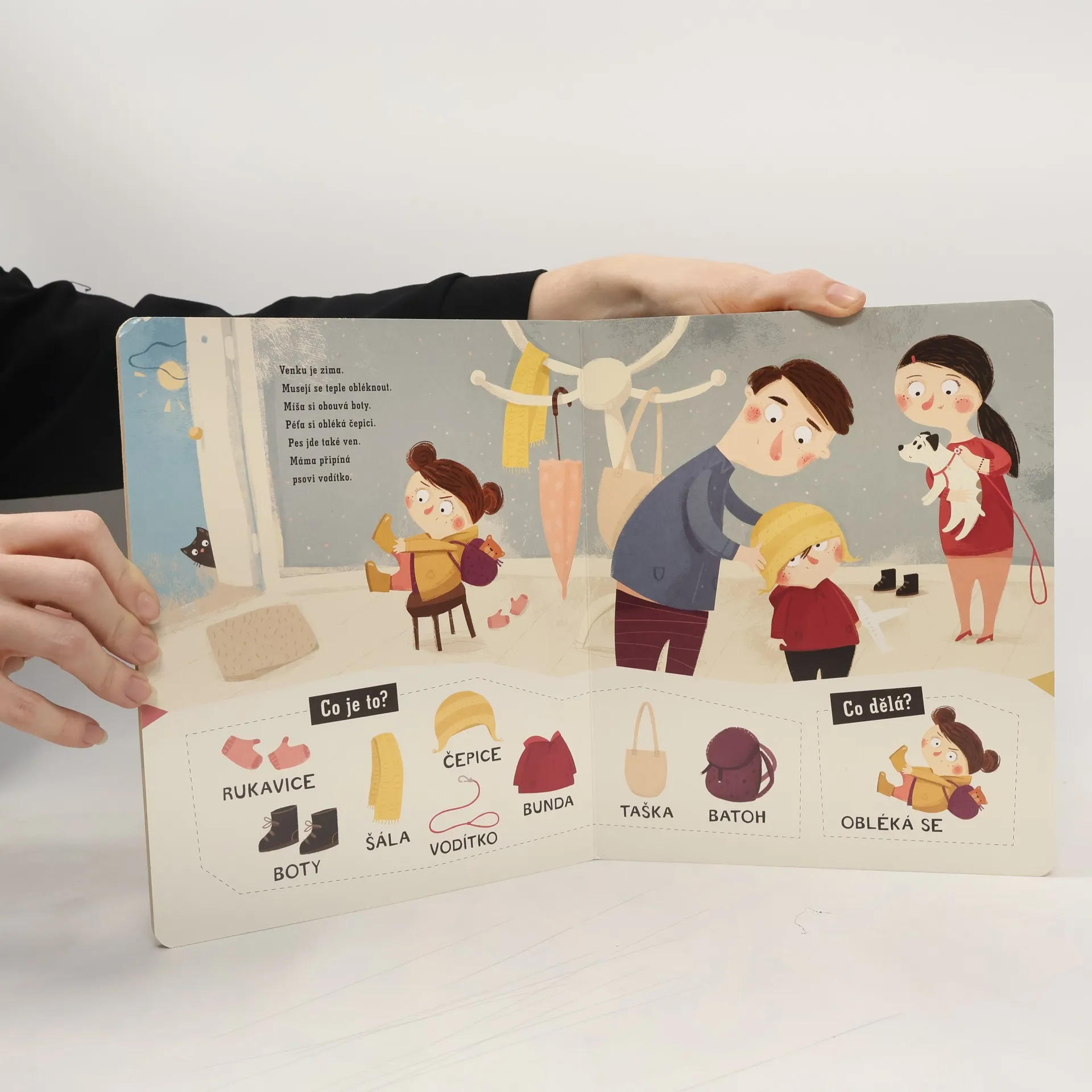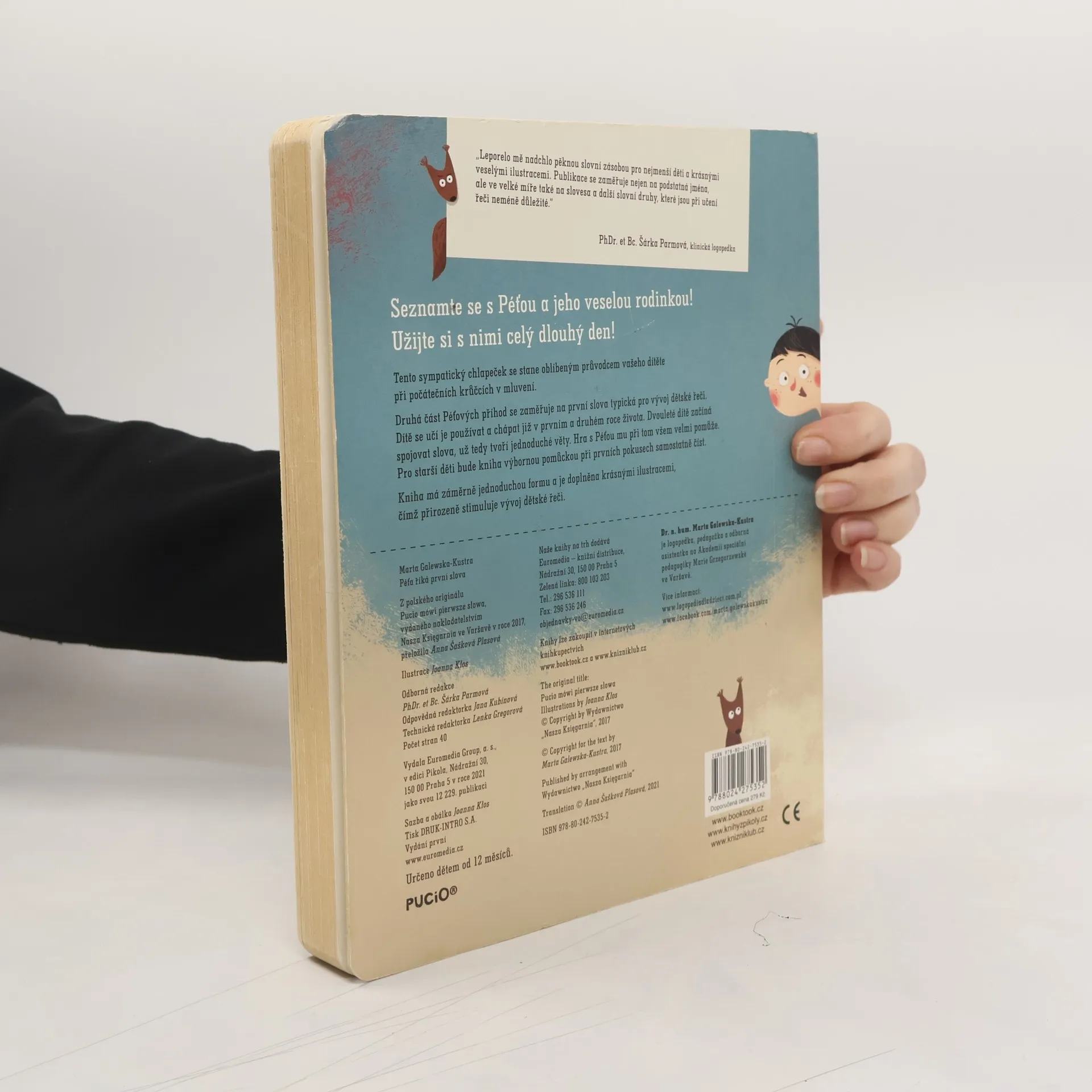 Seznamte se s Péťou a jeho veselou rodinkou! Užijte si s nimi celý dlouhý den! Tento sympatický chlapeček se stane oblíbeným průvodcem vašeho dítěte při prvních krůčcích v mluvení. Kniha se zaměřuje na první slova typická pro vývoj dětské řeči. Dítě se učí je používat a chápat již v prvním a druhém roce života. Dvouleté dítě začíná spojovat slova, už tedy tvoří jednoduché věty. Hra s Péťou mu při tom všem velmi pomůže. Pro starší děti bude kniha výbornou pomůckou při prvních pokusech samostatně číst. Leporelo je určeno dětem od 12 měsíců.