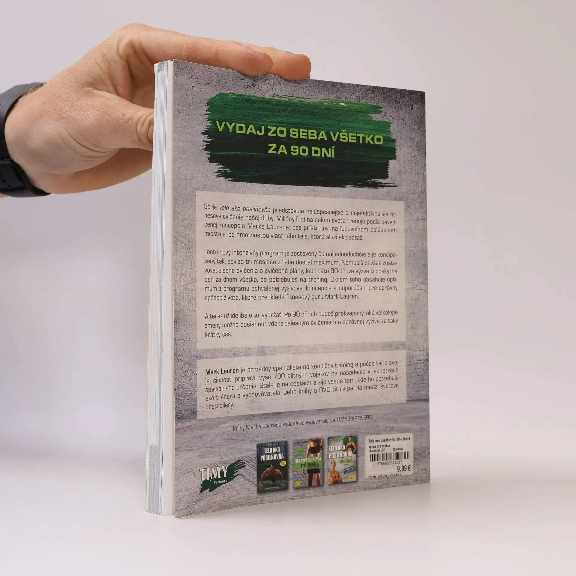 Pretvorte svoje telo do jeho najdokonalejšej podoby za 90 dní! Séria Telo ako posilňovňa predstavuje najúspešnejšie a najefektívnejšie fitnesové cvičenia dneška. Milióny ľudí na celom svete trénujú podľa osvedčenej koncepcie Marka Laurena: bez prístrojov, na ľubovoľnom obľúbenom mieste a iba hmotnosťou vlastného tela, ktorá slúži ako záťaž. Tento nový intenzívny program je zostavený čo najjednoduchšie a je koncipovaný tak, aby z teba dostal za tri mesiace maximum. Nemusíš si však zostavovať žiadne cvičenia a cvičebné plány, lebo táto 90-dňová výzva ti poskytne deň za dňom všetko, čo na tréning potrebuješ. Okrem toho obsahuje optimum z programu schválenej výživovej koncepcie a odporúčaní, ktoré predkladá fitnesový guru a autor bestsellerov Mark Lauren. A teraz už ide iba o to, vydržať! Po 90 dňoch budeš prekvapený, aké veľkolepé zmeny možno dosiahnuť vďaka telesným cvičeniam a správnej výžive za taký krátky čas.