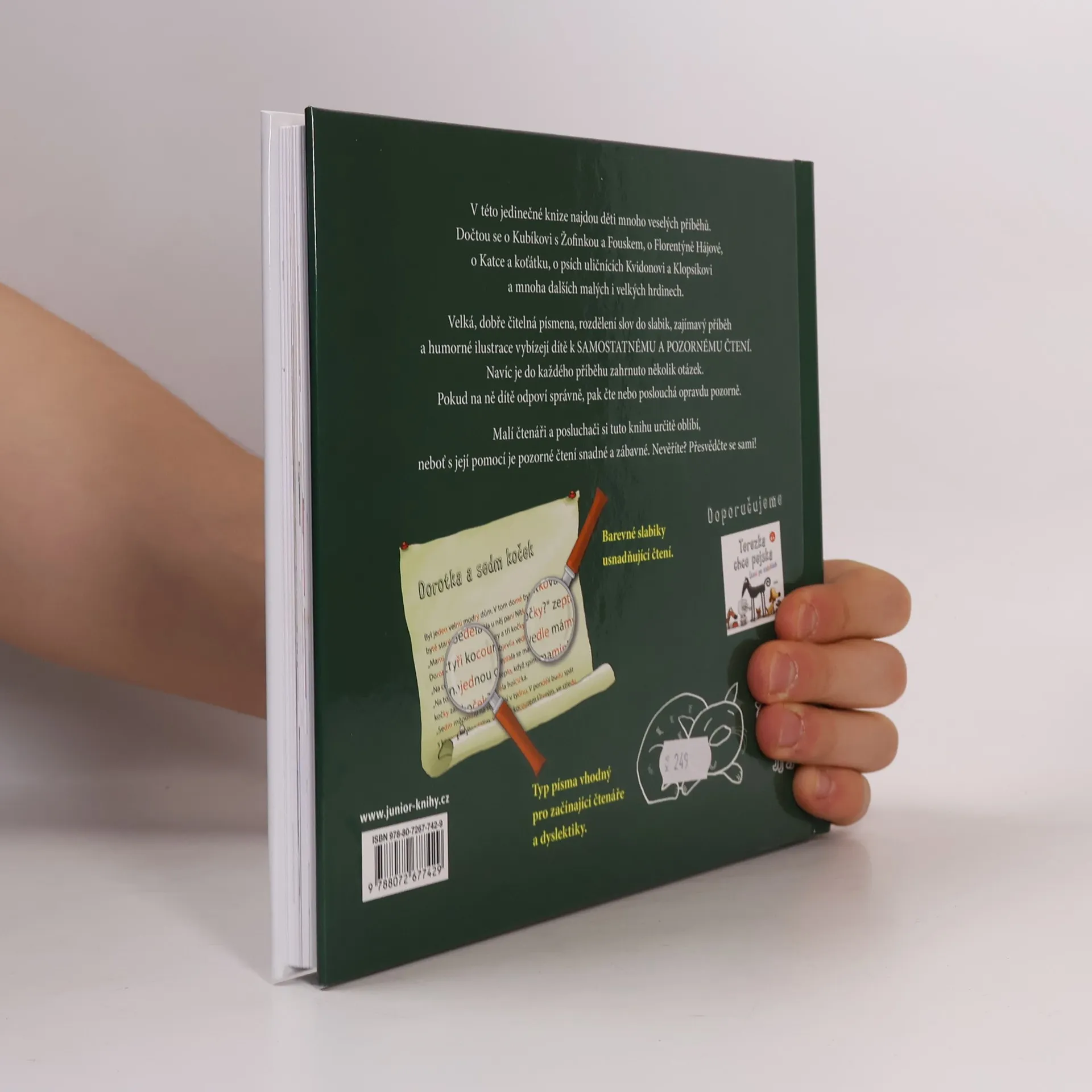 Deset krátkých a veselých příběhů s celostránkovými ilustracemi vhodných pro nácvik samostatného čtení. Slabiky ve slovech jsou barevně odlišeny.V této knize se děti dočtou o Kubíkovi s Žofinkou a Fouskem, o Florentýně Hájové, o Katce a koťátku, o psích uličnících Kvidonovi a Klopsíkovi a mnoha dalších malých i velkých hrdinech. Velká, dobře čitelná písmena, rozdělení slov do slabik, příběh a humorné ilustrace vybízejí dítě k samostatnému a pozornému čtení. Navíc je do každého příběhu zahrnuto několik otázek. Typ písma vhodný pro začínající čtenáře a dyslektiky.