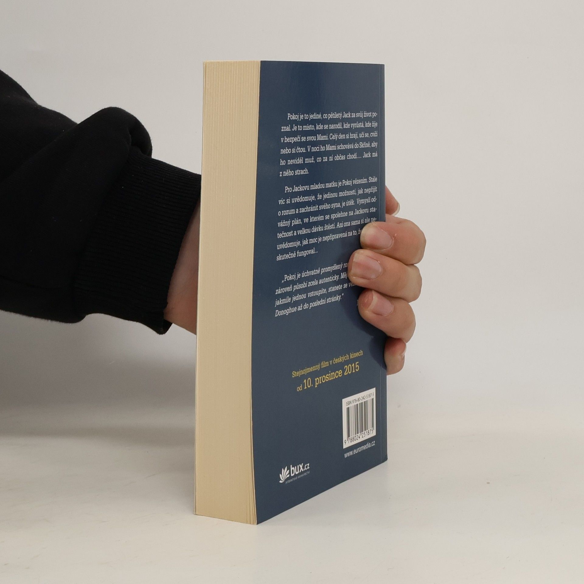 Strhující román o síle dětské nevinnosti a odvahy, nominovaný na Man Booker Prize. Kniha byla v roce 2015 také úspěšně zfilmována. – Pokoj je to jediné, co pětiletý Jack za svůj život poznal. Je to místo, kde se narodil, kde vyrůstá, kde žije v bezpečí se svou Mami. Celý den si hrají, učí se, cvičí nebo si čtou. V noci ho Mami schovává do Skříně, aby ho neviděl muž, co za ní občas chodí. Jack má z něho strach. Jackova mladá matka ví, že Pokoj je ve skutečnosti vězení. Jednoho dne se v její hlavě zrodí plán úniku. Pomyslela ale na to, co je vlastně doopravdy čeká Venku?