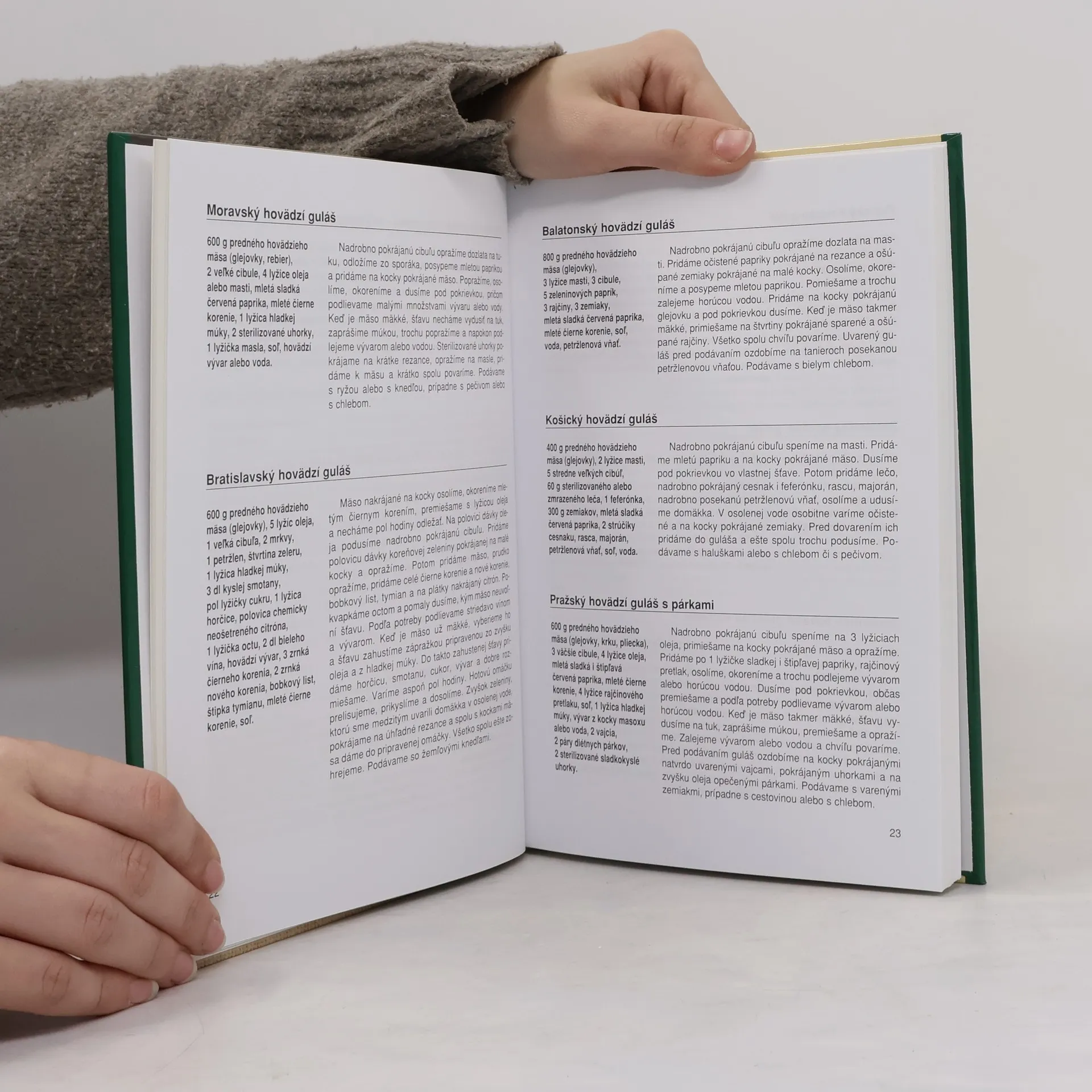 Kniha obsahuje množstvo chutných receptov, nenáročných na prípravu a cenovo dostupných. Veľmi zaujímavá je obrazová príloha najbežnejších druhov jatočného mäsa deleného pre spracovanie na kuchárske účely. Pre lepšiu orientáciu uvádzame v knihe podrobný register názvov všetkých jedál.