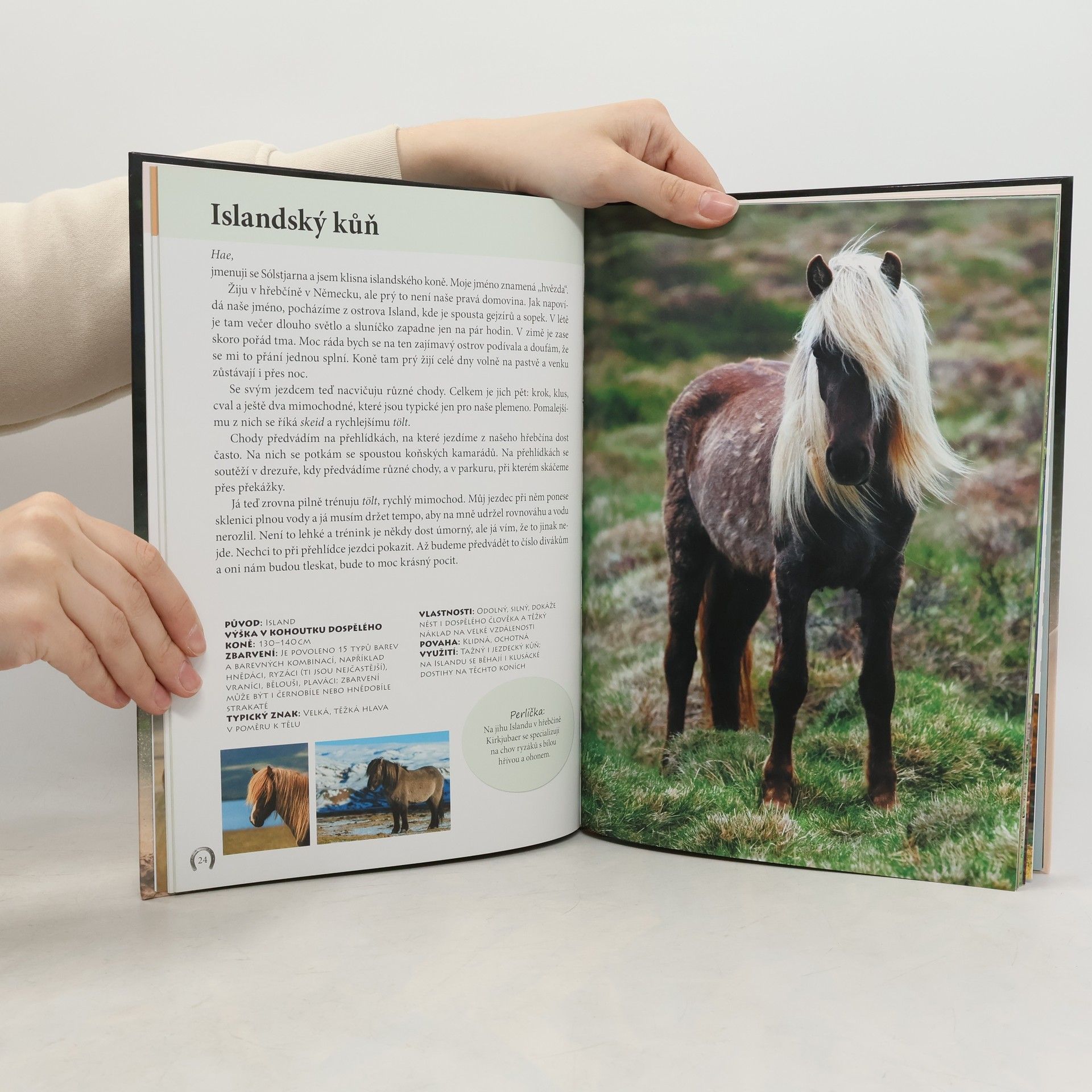 Vypravte se s námi za nespoutanými mustangy do americké prérie, za shetlandskými ponyi na vichrné skotské pobřeží nebo za andaluskými koňmi na slunný jih Španělska. V této knize plné zajímavostí a fotografií se seznámíte s koňskými plemeny z celého světa. Dočtete se o fascinující historii jednotlivých plemen, jejich charakteristických rysech i místech, odkud pocházejí. Vydejte se s námi na vzrušující cestu za nejušlechtilejšími lidskými společníky!