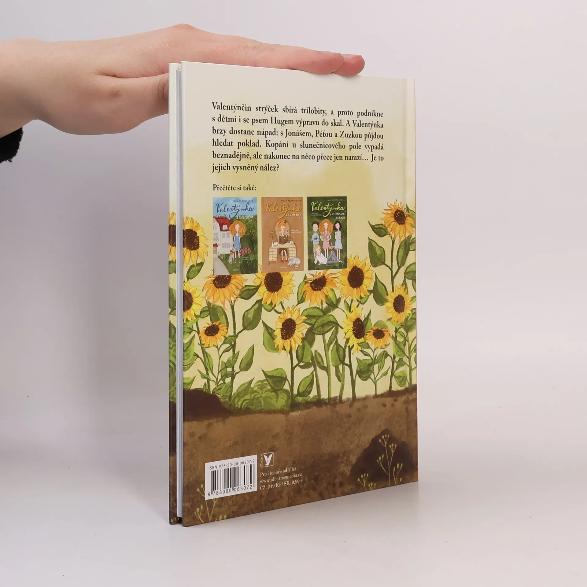 Valentýnka na lovu starobylých vzácností. Čtvrtý díl oblíbené série. Kdo už Valentýnku zná, ví, že pro kamarády Jonáše, Péťu a Zuzku ráda vymýšlí nevšední hry. A když Valentýnčin strýček, který sbírá trilobity, vezme děti i se psem Hugem na výpravu do skal, rozhodne se holčička založit sbírku a otevře Muzeum fosilií. A hned je tu další nápad: děti půjdou hledat poklad. Kopání u slunečnicového pole vypadá dlouho beznadějně, ale třetí den na něco přece jen narazí… Bude to jejich vysněný nález? A překvapením není konec!