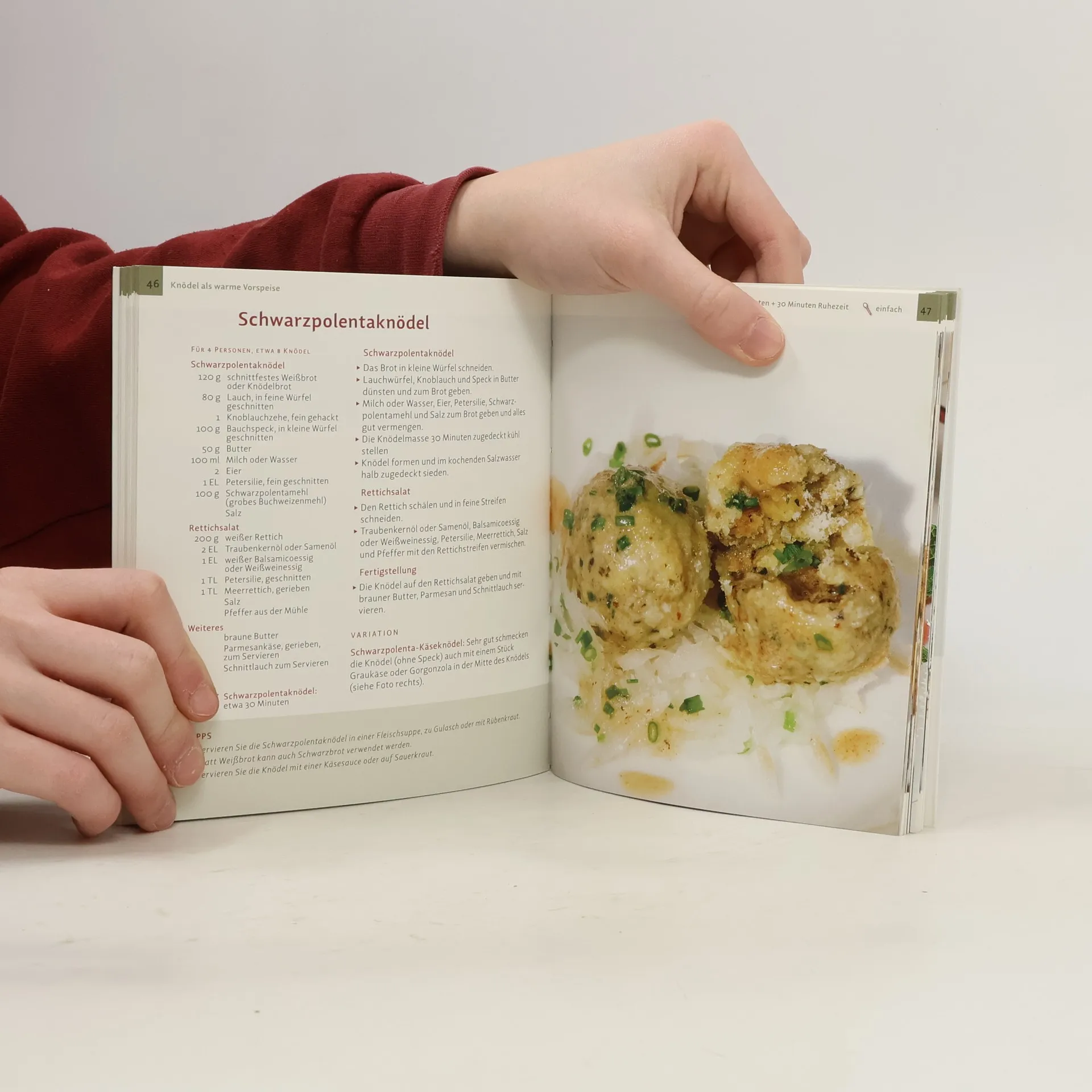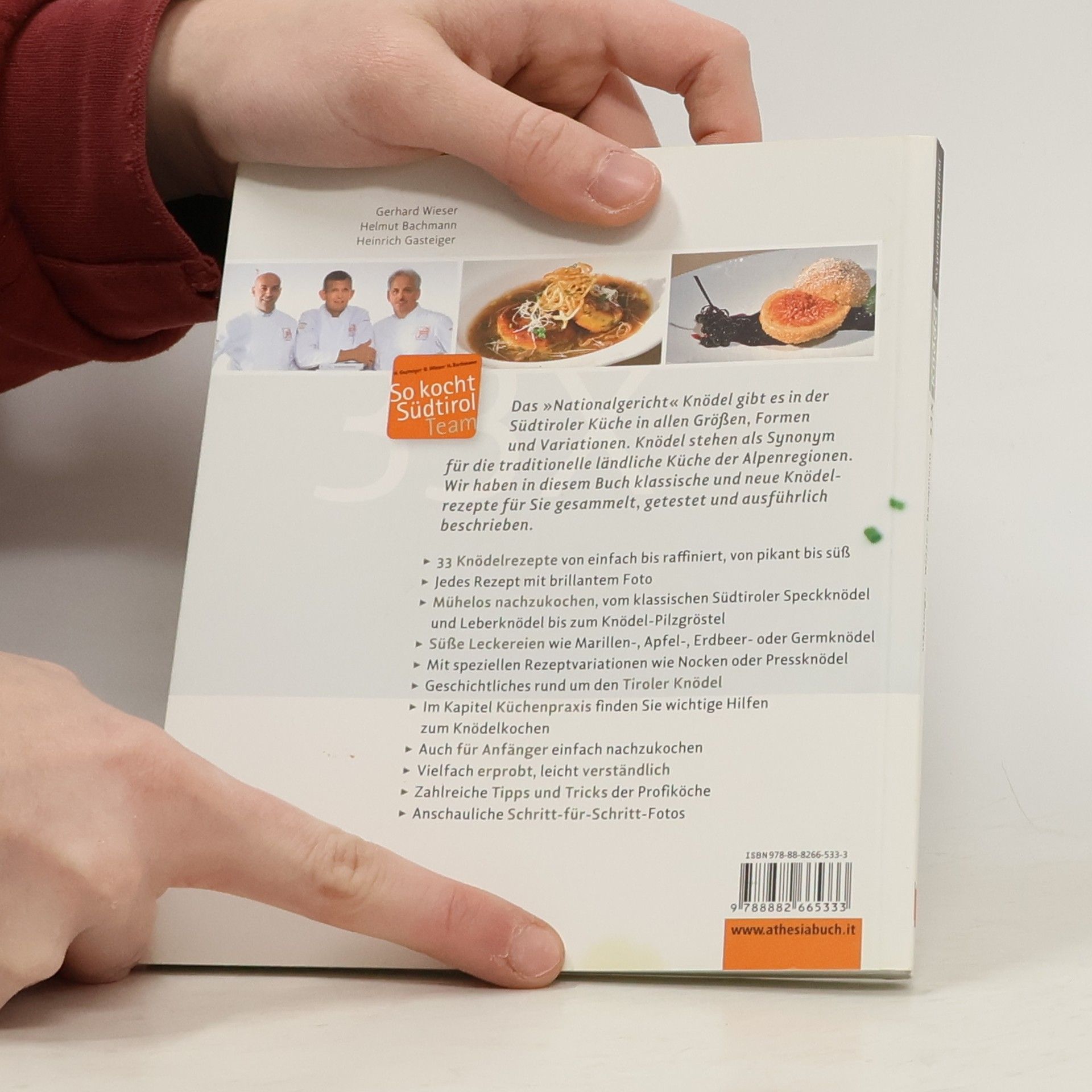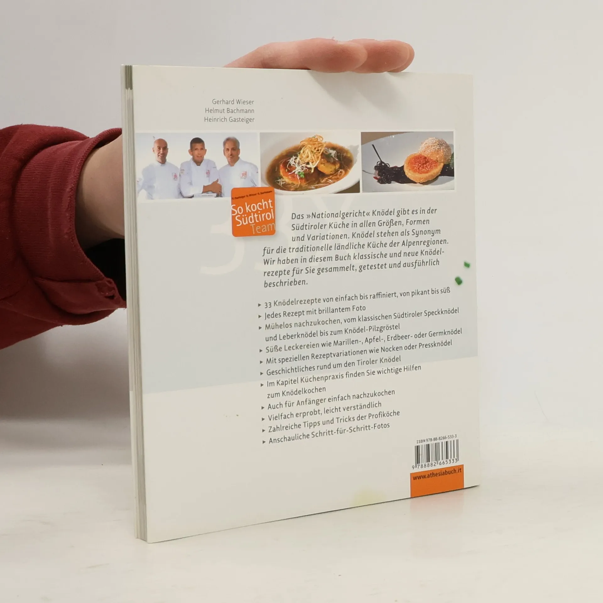 Das „Nationalgericht“ Knödel gibt es in der Südtiroler Küche in allen Größen, Formen und Variationen. Knödel stehen als Synonym für die traditionelle ländliche Küche der Alpenregionen. Wir haben in diesem Buch klassische und neue Knödelrezepte für Sie gesammelt, getestet und ausführlich beschrieben. 33 Knödelrezepte von einfach bis raffiniert, von pikant bis süß Jedes Rezept mit brillantem Foto Mühelos nachzukochen, vom klassischen Südtiroler Speckknödel und Leberknödel bis zum Knödel-Pilzgröstel Süße Leckereien wie Marillen-, Apfel-, Erdbeer- oder Germknödel Mit speziellen Rezeptvariationen wie Nocken oder Pressknödel Geschichtliches rund um den Tiroler Knödel Im Kapitel Küchenpraxis finden Sie wichtige Hilfen zum Knödelkochen Auch für Anfänger einfach nachzukochen Vielfach erprobt, leicht verständlich Zahlreiche Tipps und Tricks der Profiköche Anschauliche Schritt-für-Schritt-Fotos Ausgezeichnet mit dem Sonderpreis der GAD (Gastronomische Akademie Deutschlands E.V.) „Eine ganzheitliche, regionale Buchreihe – als eine kleine Kochschule, die keine Wünsche offenlässt. (…) Die Rezepte werden Schritt für Schritt erklärt, zum guten Gelingen ist immer ein roter Faden zu erkennen, gerade auch für junge und (noch) unerfahrene Köche. (…) Mehr Kochbuch braucht man eigentlich nicht.“ GAD-Jury, Oktober 2017.