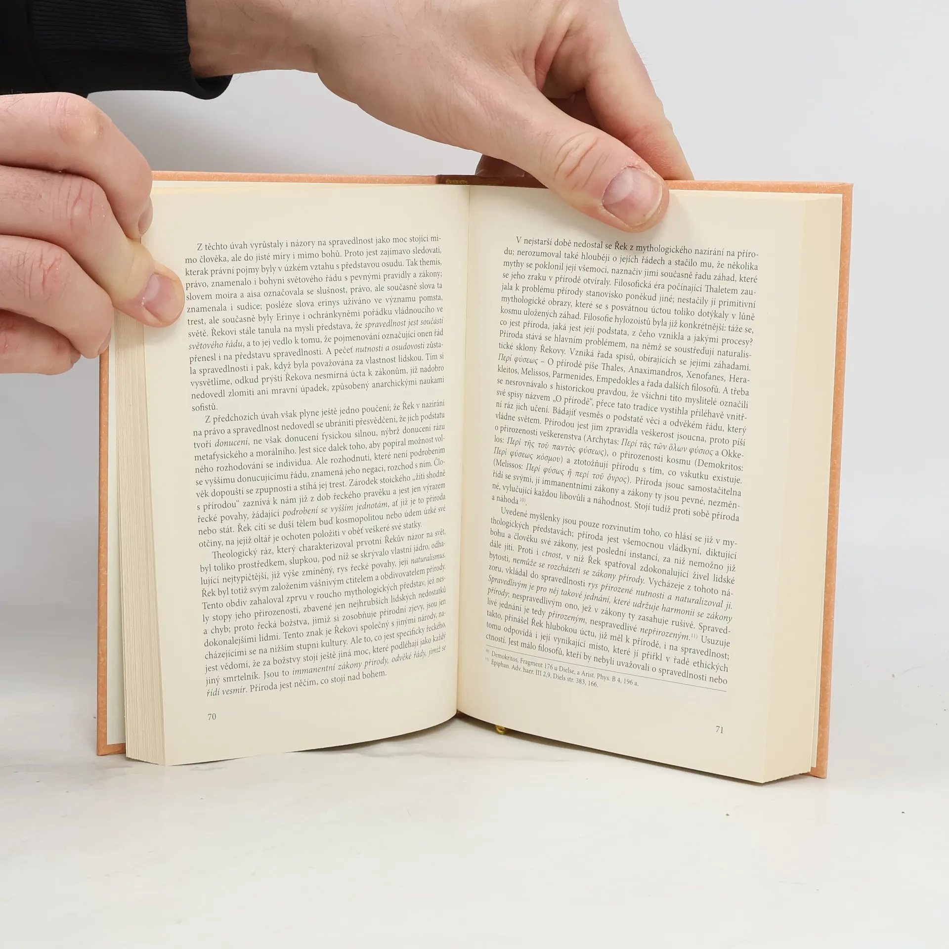 Tomsova kniha o idejích spravedlnosti a práva v řecké právní filosofii náleží k dílům, jejichž kvalitu a životnost prověřil čas. Stojí za to přiblížit si jejím čtením myšlenkový svět velkých řeckých filosofů. Od Řeků odvozujeme vše, co je typické pro sociokulturní prostředí naší civilizace. Nejinak je tomu i ve vztahu k dnešnímu hledání a pojímání práva a spravedlnosti. Zájemce překvapí životnost myšlenek velikánů antického světa, to, jak podnětné pro dnešek je jejich namáhavé hledání pravdy a stejně pracné vyvracení omylů na cestě k poznání. Nestranná, kritická Tomsova analýza přesvědčivě ukazuje, jak je důležité vracet se k počátkům - uvědomit si, v čem opakujeme staré pravdy a v čem jen kopírujeme staré chyby. Nové vydání základního Tomsova spisu není jen splacením dluhu jemnému právnímu filosofovi velké erudice, kterého totalitní pořádek izoloval od veřejnosti. Hlavní přínos a trvalá hodnota Tomsovy knihy je v tom, že nás nutí klást si otázky, proč v dnešní společnosti často nad solidností dobývá úspěchu demagogie a nad poznáním leckdy vítězí líbivý bonmot či autoritativní křik prostý argumentů. Počne-li se člověk sám sebe takto ptát, snáze odolá těm, kdo ho chtějí ovládnout sugestivní, líbivou, ale prázdnou řečí bez věcného podkladu