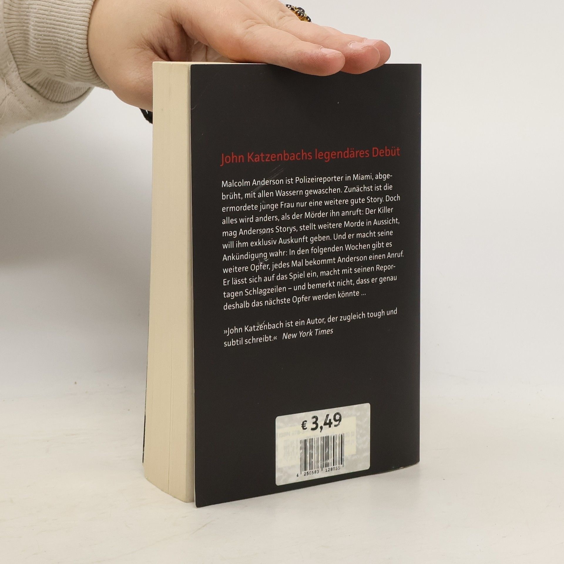 John Katzenbachs Debüt, mit dem er seinen Ruhm als Thriller-Autor begründete Malcolm Anderson ist Polizeireporter in Miami, abgebrüht, mit allen Wassern gewaschen. Zunächst ist die ermordete junge Frau nur eine weitere gute Story. Doch alles wird anders, als der Mörder ihn anruft: Der Killer mag Andersons Storys, stellt weitere Morde in Aussicht und will ihm exklusiv Auskunft geben. Und er macht seine Ankündigung wahr. In den folgenden Wochen gibt es weitere Opfer, und jedes Mal bekommt Anderson einen Anruf. Er lässt sich auf das Spiel ein, macht durch seine Reportagen Schlagzeilen, erlangt Ruhm – und bemerkt nicht, dass er genau deshalb das nächste Opfer des Killers werden könnte ... „John Katzenbach ist ein Autor, der zugleich tough und subtil schreibt.“ New York Times