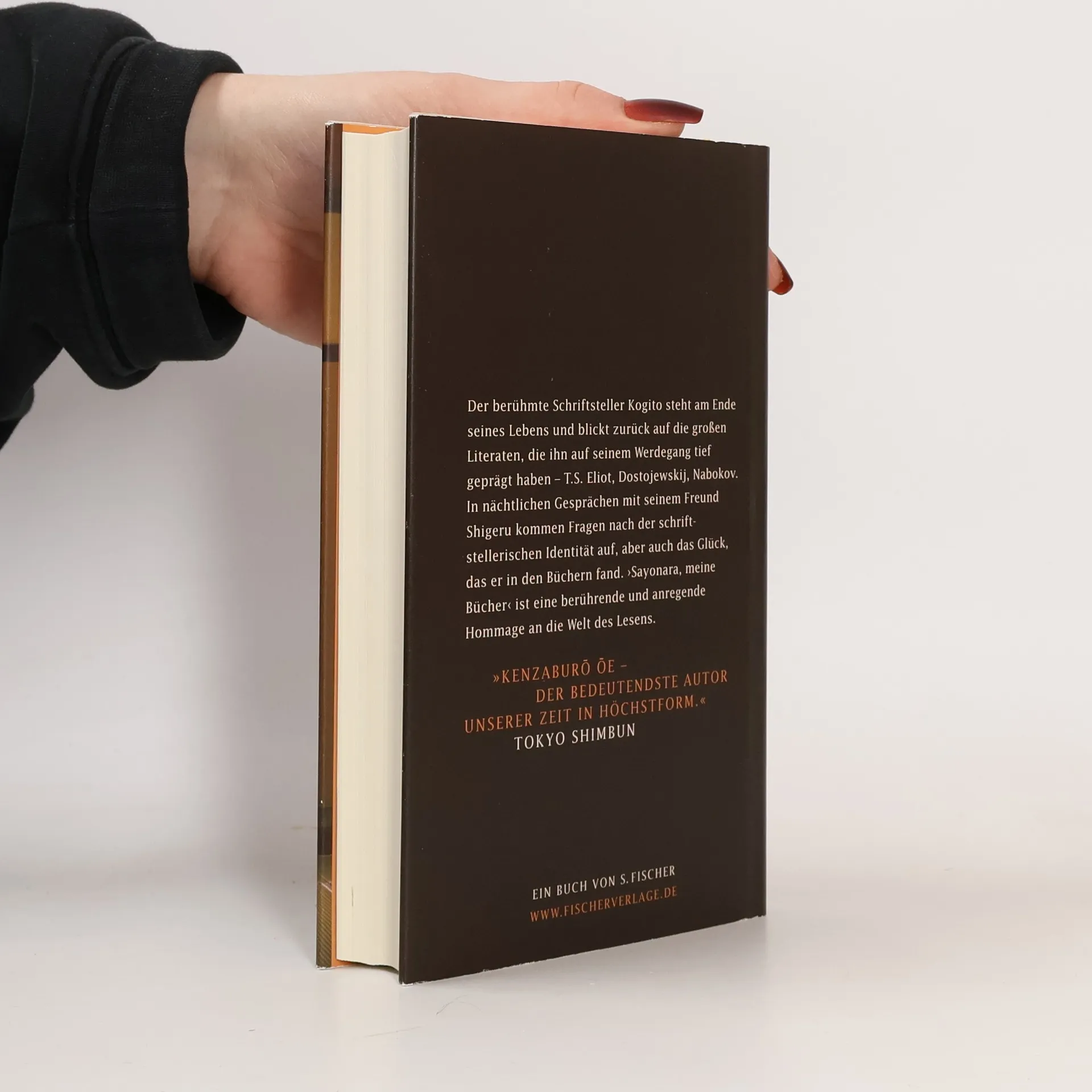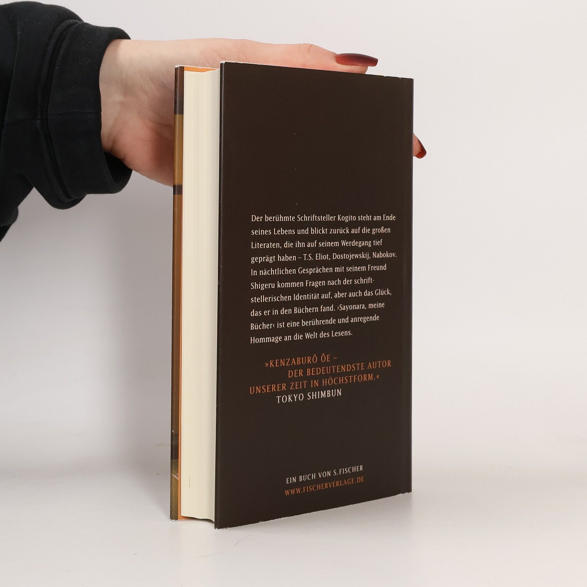 Kogito ist verletzt - ein Gewaltakt hat ihn aus der Bahn geworfen. In schlaflosen Nächten und den Gesprächen mit seinem Freund Shigeru lässt er sein Leben Revue passieren. Fragen nach seiner schriftstellerischen Identität kommen auf, Erinnerungen an seine Kindheit, an das Haus in den Bergen und an die Großmutter, die ihm die Geschichten der Gegend erzählte. Kogito steht am Ende seines Lebens, wäre es nicht an der Zeit, mit dem Schreiben aufzuhören, sich von den eigenen wie von den fremden Büchern zu verabschieden? ›Sayonara, meine Bücher‹ beleuchtet auf bewegende Weise den Werdegang eines der bedeutendsten Schriftsteller unserer Zeit und ist zugleich eine anregende und überraschende Hommage an die Welt der Bücher.