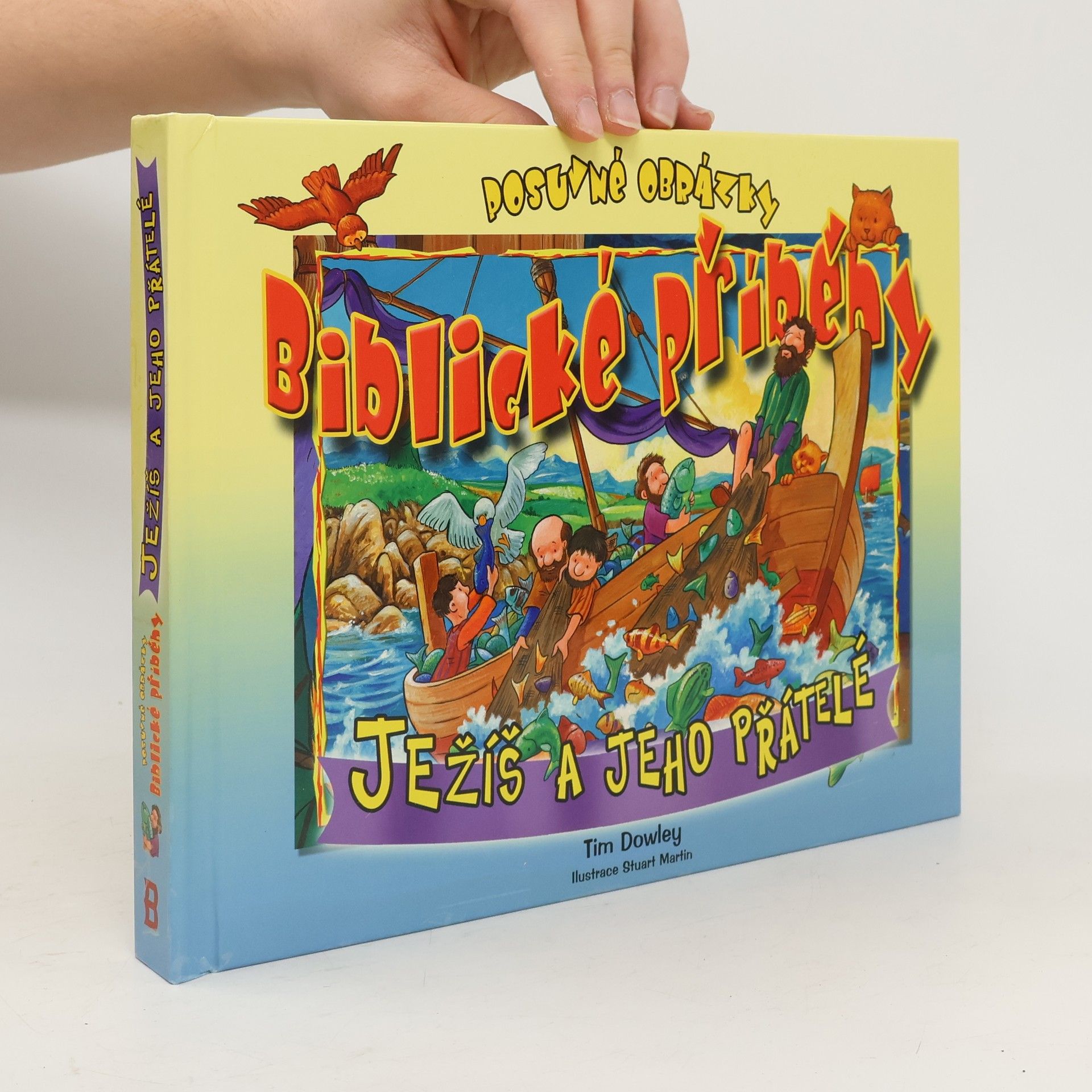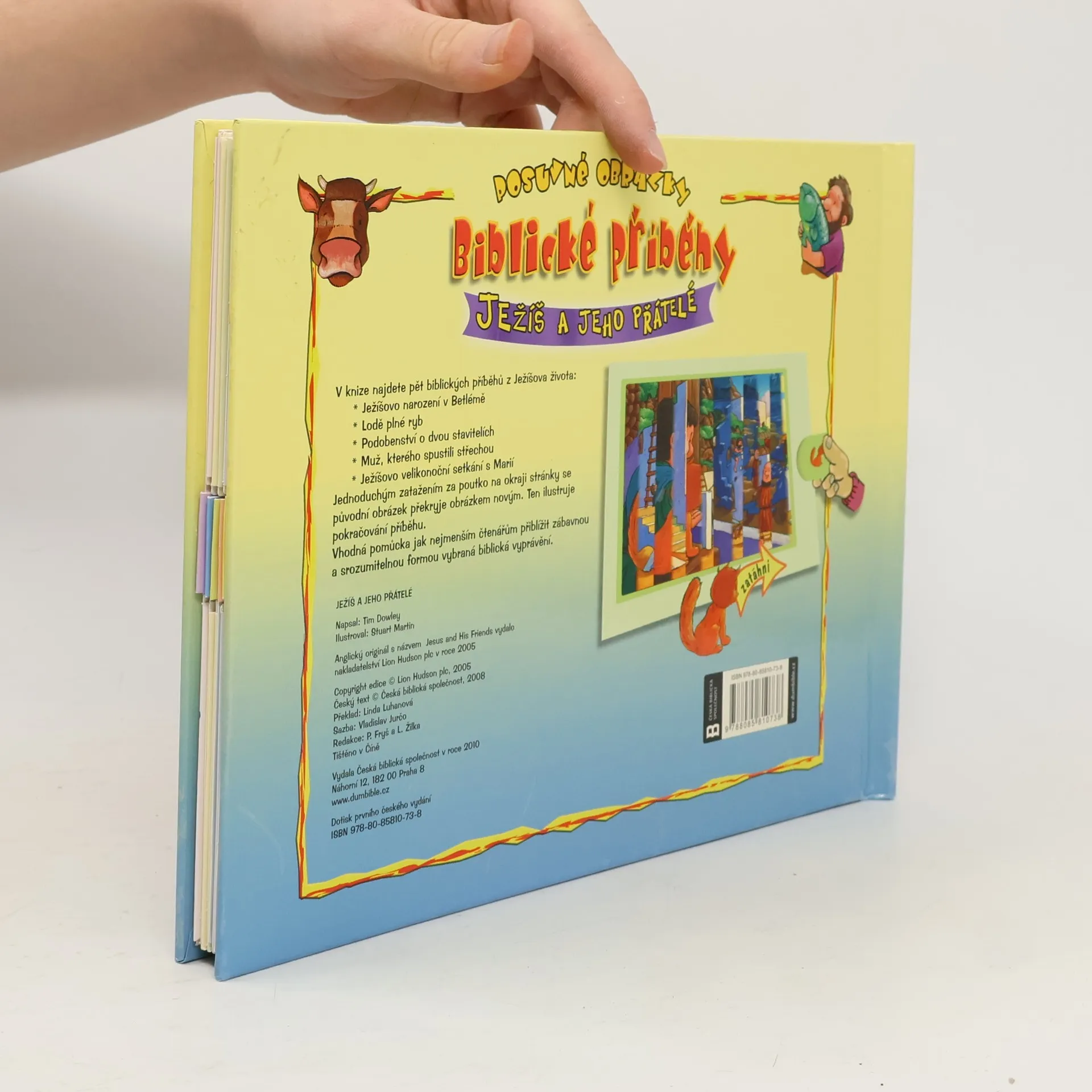Lodě plné ryb, Podobenství o dvou stavitelích, Muž, kterého spustili střechou a Ježíšovo velikonoční setkání s Marií. Jednoduchým zatažením za poutko na okraji stránky se původní obrázek překryje obrázkem novým a ten ilustruje pokračování příběhu. Knížka tak přibližuje nejmenším čtenářům vybraná biblická vyprávění.
