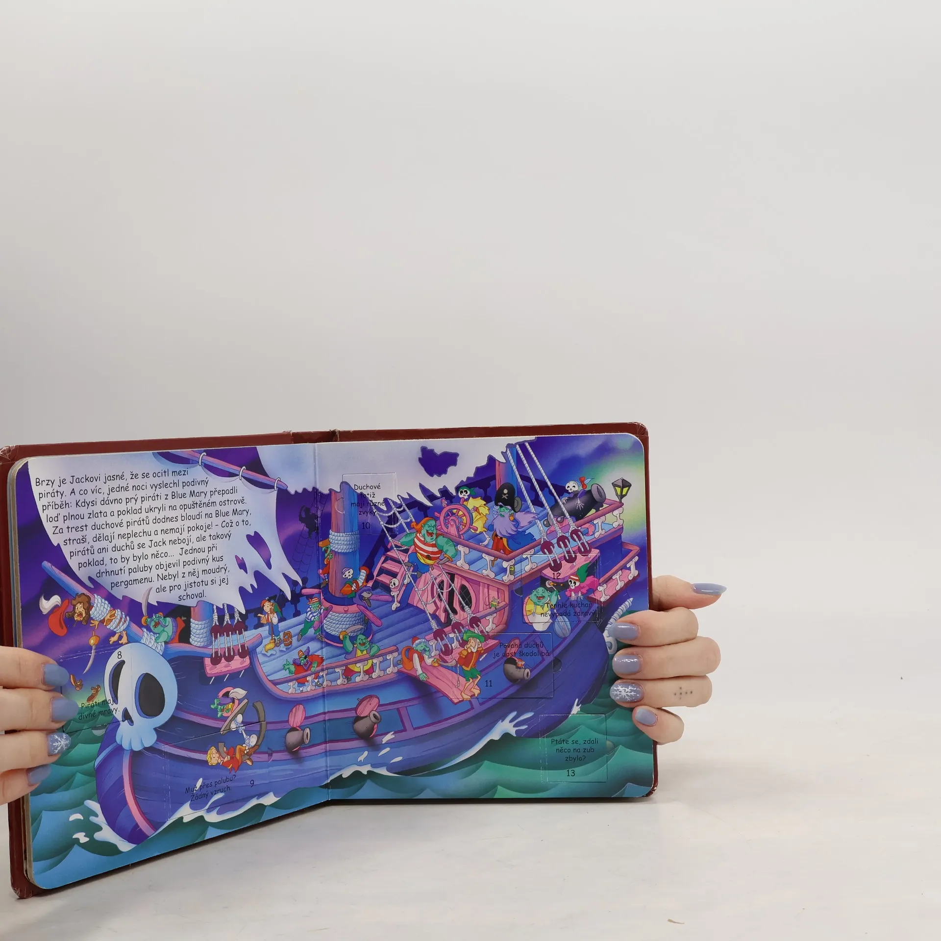 Chceš znát příběh, který čeká statečného námořníka Jacka? Jsou v něm kouzla, poklad, piráti - plavčík Jack se ale neztratí! Tenhle příběh dobrodružství skýtá: pod obrázky tajemství jsou skrytá. Bez čtení je ale poznáš sotva! Neváhej, vždyť už se zvedá kotva!