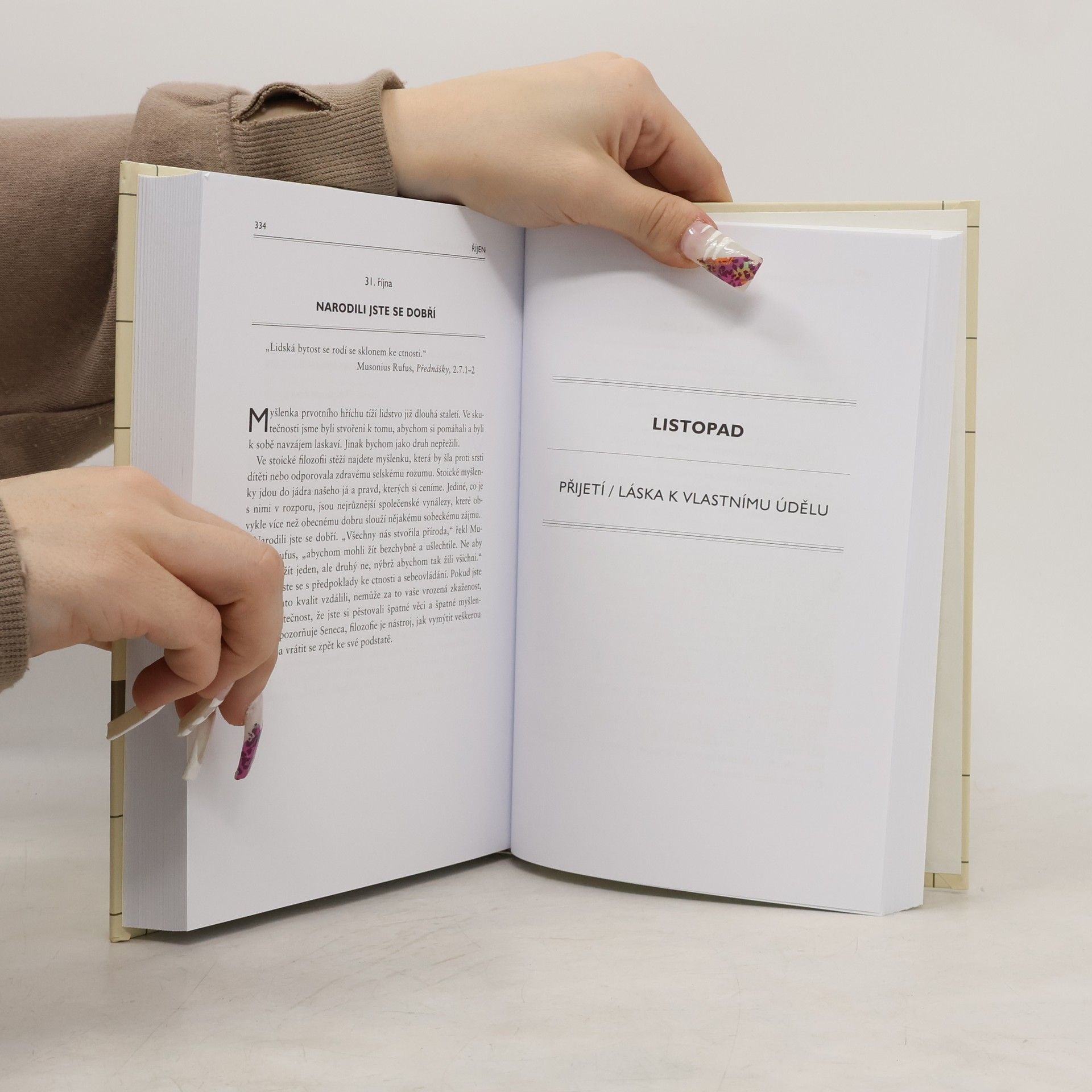 Zamyšlení pro každý den v roce v kontextu stoických myšlenek Marka Aurelia, Epiktéta či Seneky. Texty odpovídají na to, co je skutečné měřítko úspěchu, jak ovládnout negativní emoce, jak správně užít rozum, jak nalézt smysl života a překonat smutek.