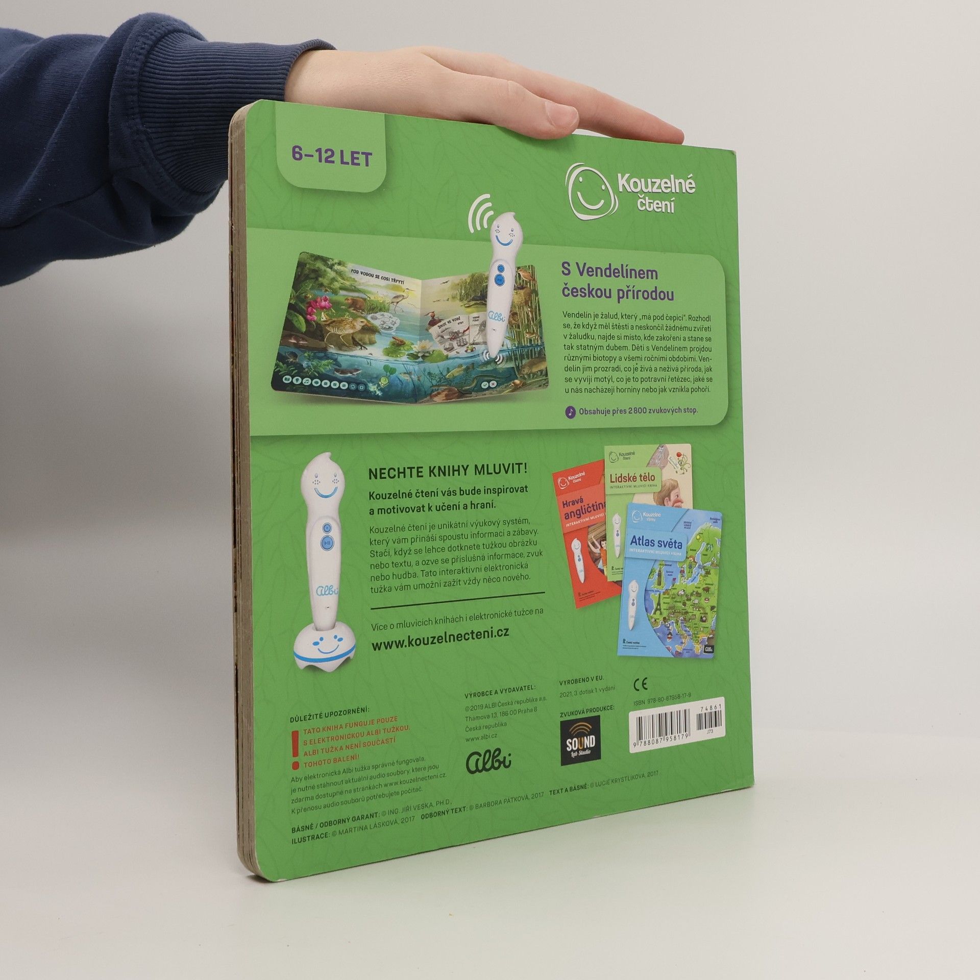 Interaktivní mluvící dětská kniha Hravá přírodověda z edice Kouzelné čtení seznámí děti od 6 let se základy přírodovědy. Knihou je provede žalud Vendelín, který se rozhodl, že když už měl to štěstí a neskončil žádnému zvířeti v žaludku, najde si místo, kde zakoření a stane se statným dubem. Děti si v knize s Vendelínem projdou různými biotopy a jejich základními složkami. Vendelín jim prozradí co je živá a neživá příroda, jak se vyvíjí motýl, co je to potravní řetězec, jaké se u nás nacházejí horniny, co se dozvíme z letokruhů stromů a spoustu dalšího. V knize Hravá přírodověda nechybí kvízy ve 3 obtížnostech. Děti si tak můžou vybrat obtížnost a ověřit si, co si z knihy zapamatovaly. Těšit se můžete také na dialogy a básničky, které děti uslyší nejen od vypravěčů, ale i od samotného Vendelína. Namluvili: Veronika Khek Kubařová, Václav Neužil a Jaroslav Plesl Ilustrace: Martina Lásková Text: Barbora Pátková, Lucie Krystlíková Odborná garance a básničky: Jiří Veska