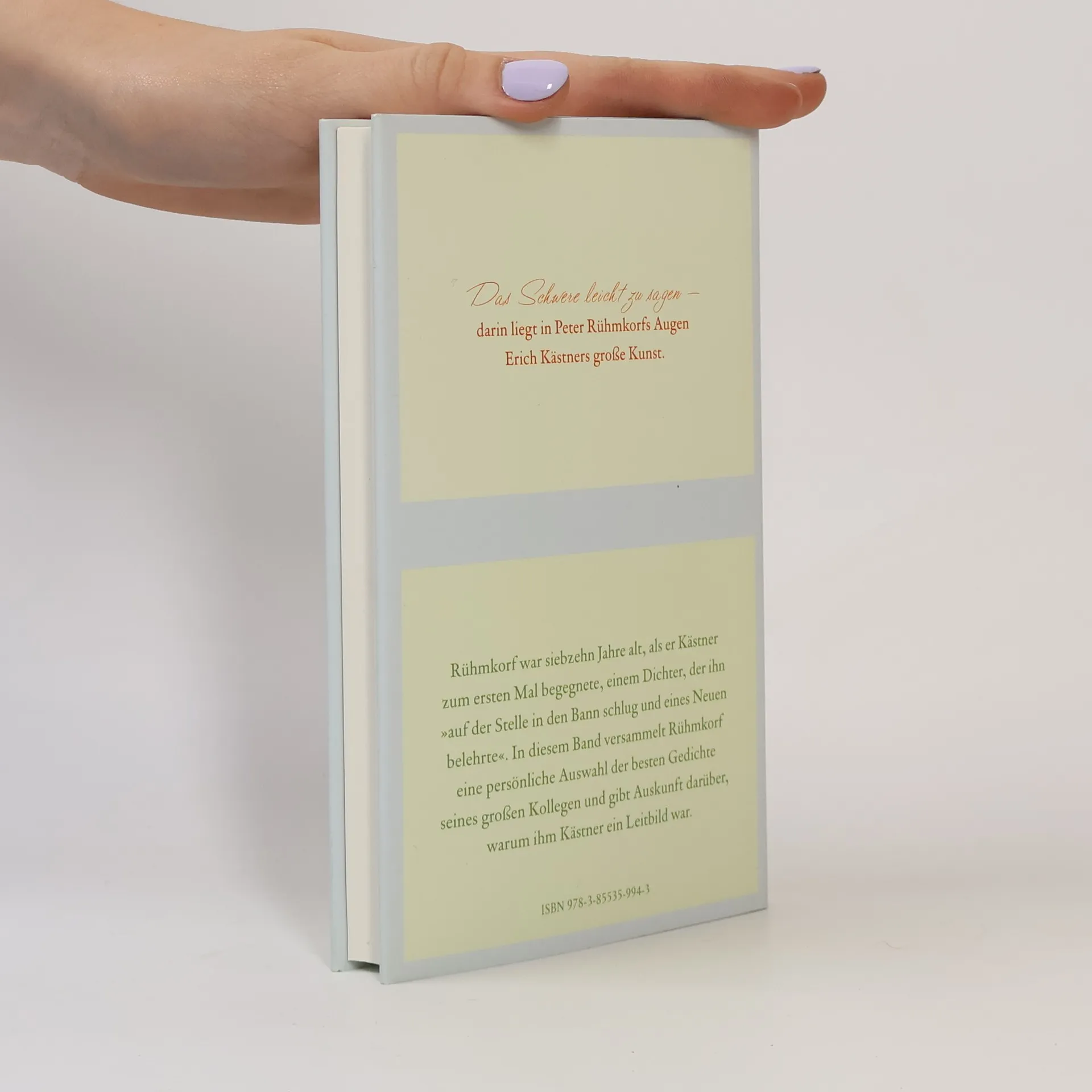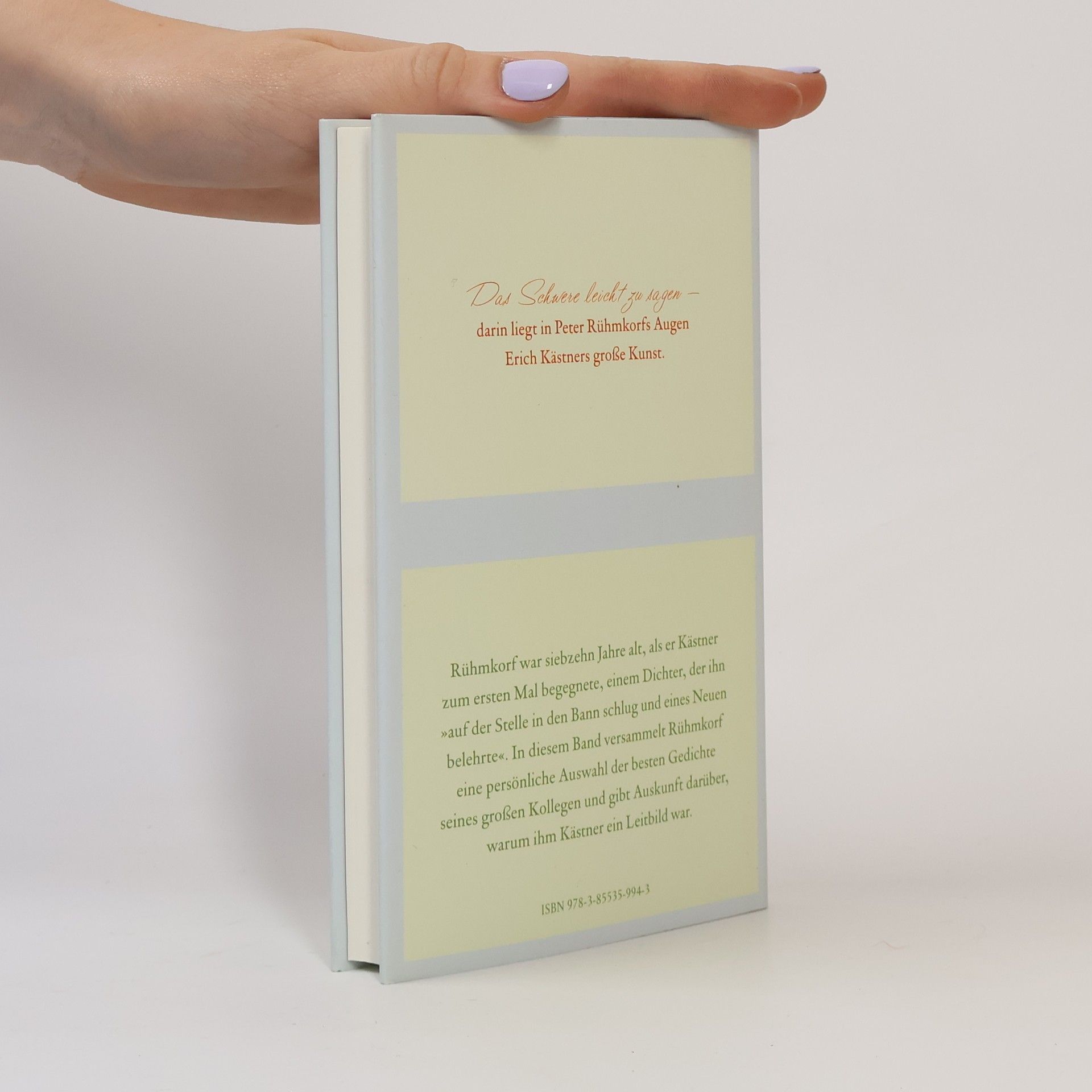 Das Schwere leicht zu sagen - darin liegt in Peter Rühmkorfs Augen Erich Kästners große Kunst. Rühmkorf war siebzehn jarhe alt, als er Kästner zum ersten Mal begegnete, einem Dichter, der ihn auf der Stelle in den Bann schlug und eines Neuen belehrte. In diesem Band versammelt Rühmkorf eine persönliche Auswahl der besten Gedichte seines großen Kollegen und gibt Auskunft darüber, warum ihm Kästner ein Leitbild war.