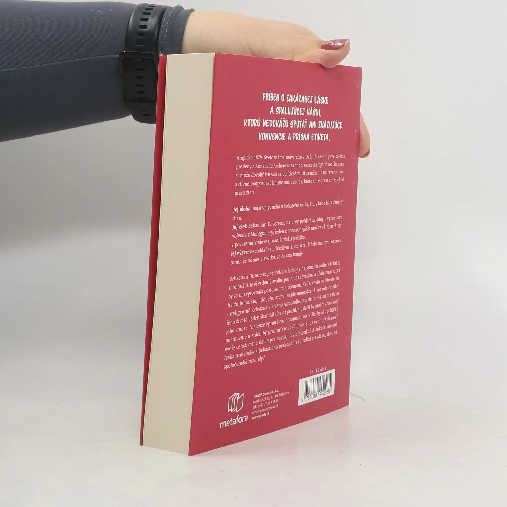 Anglicko 1879. Svetoznáma univerzita v Oxforde otvára prvé kolégiá pre ženy a Annabelle Archerová sa chopí šance na lepší život. Štúdium si môže dovoliť len vďaka politickému štipendiu, no na revanš musí aktívne podporovať hnutie sufražetiek, ktoré chce presadiť volebné právo žien. Jej úloha: nájsť vplyvného a bohatého muža, ktorý bude hájiť záujmy žien. Jej cieľ: Sebastian Devereux, na prvý pohľad chladný a vypočítavý vojvoda z Montgomery, jeden z najmocnejších mužov v krajine, ktorý z poverenia kráľovnej riadi britskú politiku. Jej výzva: nepoddať sa príťažlivosti, ktorú cíti k Sebastianovi i napriek tomu, že odmieta všetko, za čo ona bojuje. Sebastian Devereux pochádza z jednej z najstarších rodín v britskej monarchii. Je si vedomý svojho poslania i záväzkov a hľadá ženu, ktorá by sa mu vyrovnala postavením aj šarmom. Keď si cestu do jeho domu, ba čo je horšie, i do jeho srdca, nájde neurodzená, no mimoriadne inteligentná, odvážna a krásna Annabelle, otrasie to základmi celého jeho života. Jeden škandál síce už prežil, ale ďalší by mohol znamenať jeho koniec. Nielenže by mu hrozil posmech, no prišiel by aj o politické postavenie a zničil by prastarú rodovú líniu. Bude ochotný riskovať svoje celoživotné úsilie pre obyčajnú vidiečanku? A dokáže nerovná láska Annabelle a Sebastiana prekonať takú veľkú prekážku, akou sú spoločenské rozdiely?