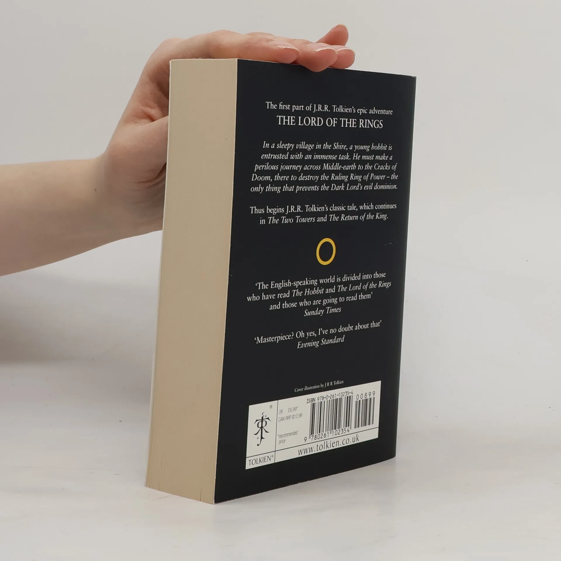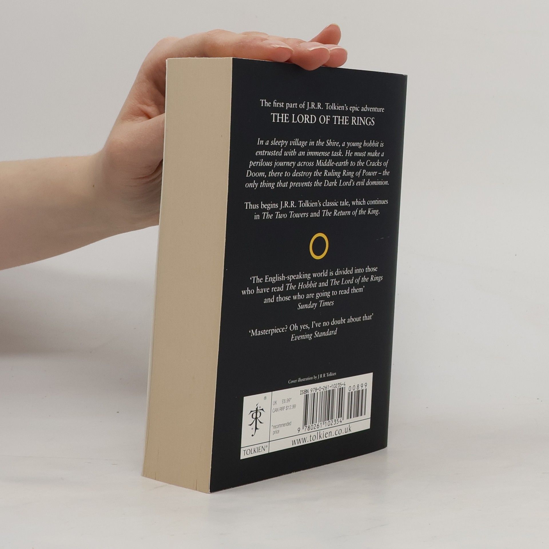 Continuing the story begun in The Hobbit, this is the first part of Tolkien s epic masterpiece, The Lord of the Rings, featuring a striking black cover based on Tolkien s own design, the definitive text, and a detailed map of Middle-earth. Sauron, the Dark Lord, has gathered to him all the Rings of Power the means by which he intends to rule Middle-earth. All he lacks in his plans for dominion is the One Ring the ring that rules them all which has fallen into the hands of the hobbit, Bilbo Baggins. In a sleepy village in the Shire, young Frodo Baggins finds himself faced with an immense task, as his elderly cousin Bilbo entrusts the Ring to his care. Frodo must leave his home and make a perilous journey across Middle-earth to the Cracks of Doom, there to destroy the Ring and foil the Dark Lord in his evil purpose. Part of a set of three paperbacks, this popular edition is once again available in its classic black livery designed by Tolkien himself."