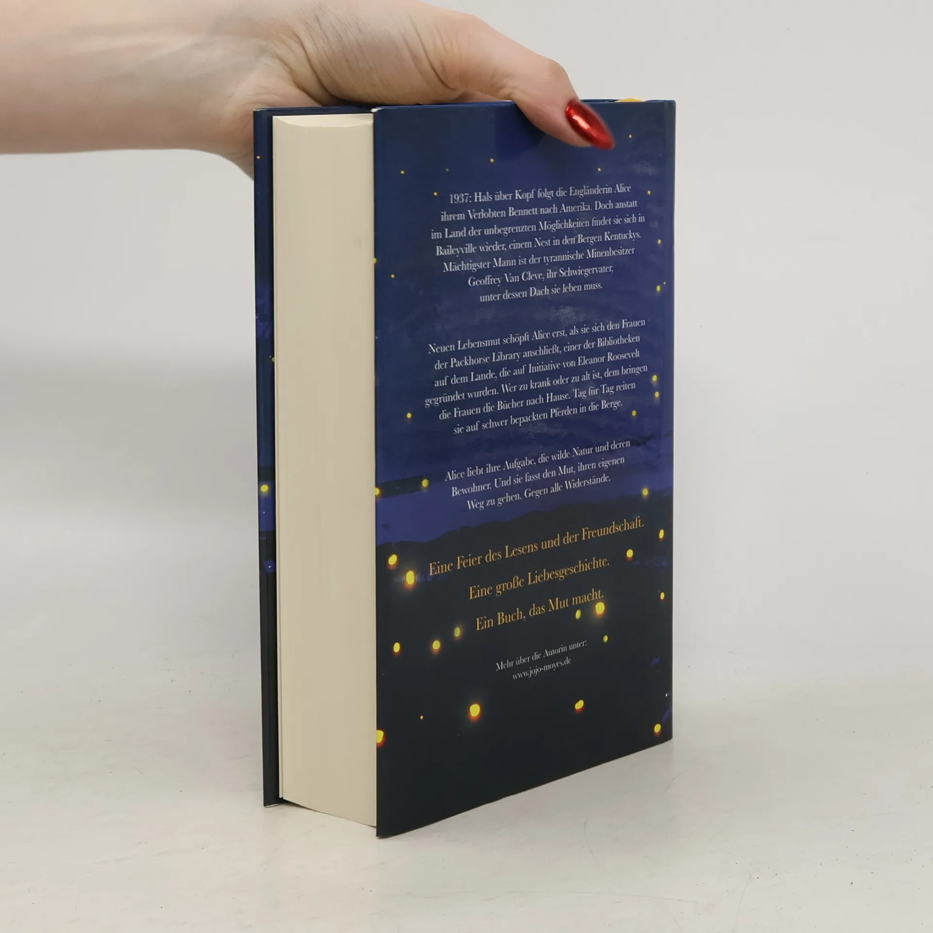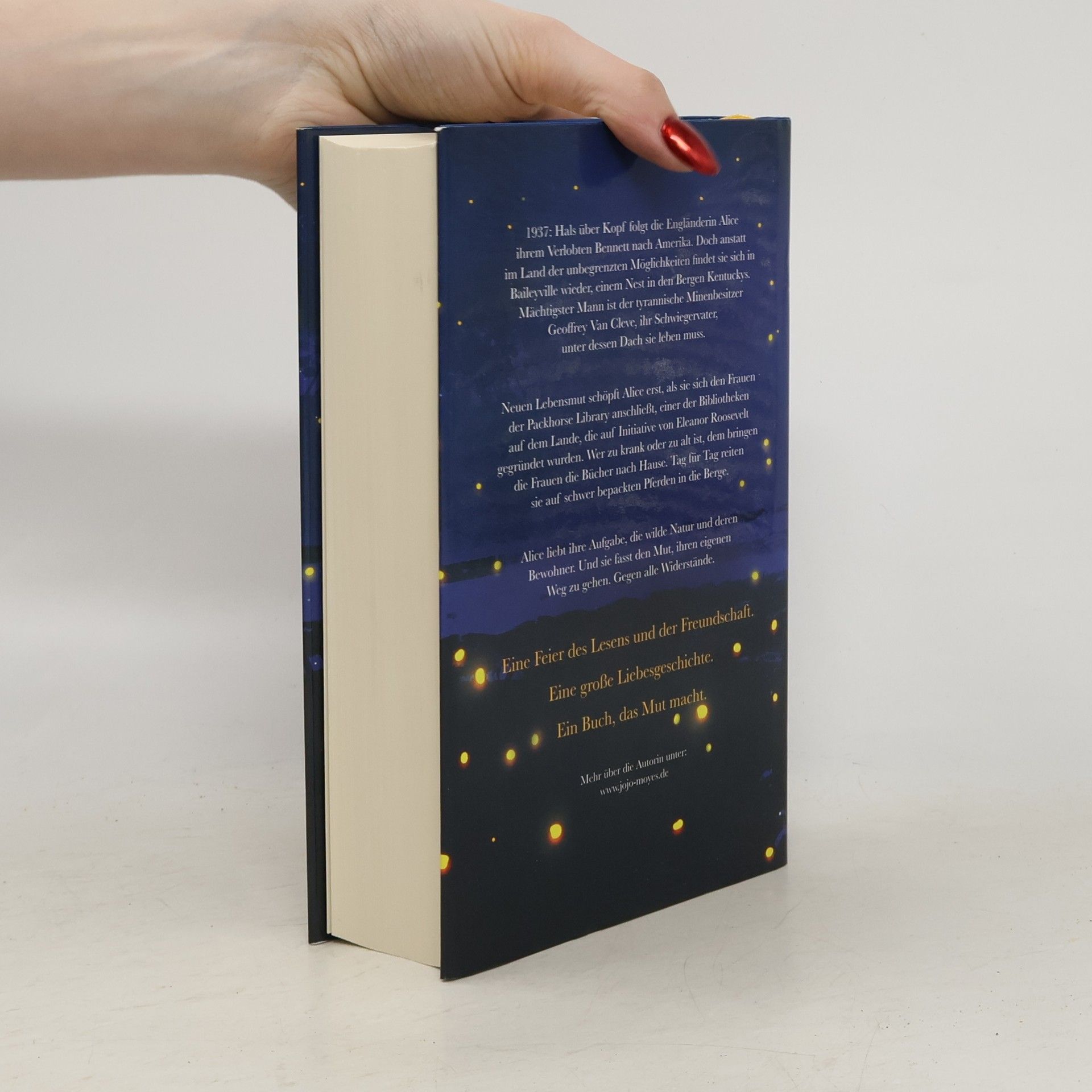 Der große neue Roman der Bestsellerautorin. Eine Feier des Lesens und der Freundschaft. Eine große Liebesgeschichte. Ein Buch, das Mut macht. 1937: Hals über Kopf folgt die Engländerin Alice ihrem Verlobten Bennett nach Amerika. Doch anstatt im Land der unbegrenzten Möglichkeiten findet sie sich in Baileyville wieder, einem Nest in den Bergen Kentuckys. Mächtigster Mann ist der tyrannische Minenbesitzer Geoffrey Van Cleve, ihr Schwiegervater, unter dessen Dach sie leben muss.Neuen Lebensmut schöpft Alice erst, als sie sich den Frauen der Packhorse Library anschließt, einer der Bibliotheken auf dem Lande, die auf Initiative von Eleanor Roosevelt gegründet wurden. Wer zu krank oder zu alt ist, dem bringen die Frauen die Bücher nach Hause. Tag für Tag reiten sie auf schwer bepackten Pferden in die Berge.Alice liebt ihre Aufgabe, die wilde Natur und deren Bewohner. Und sie fasst den Mut, ihren eigenen Weg zu gehen. Gegen alle Widerstände.